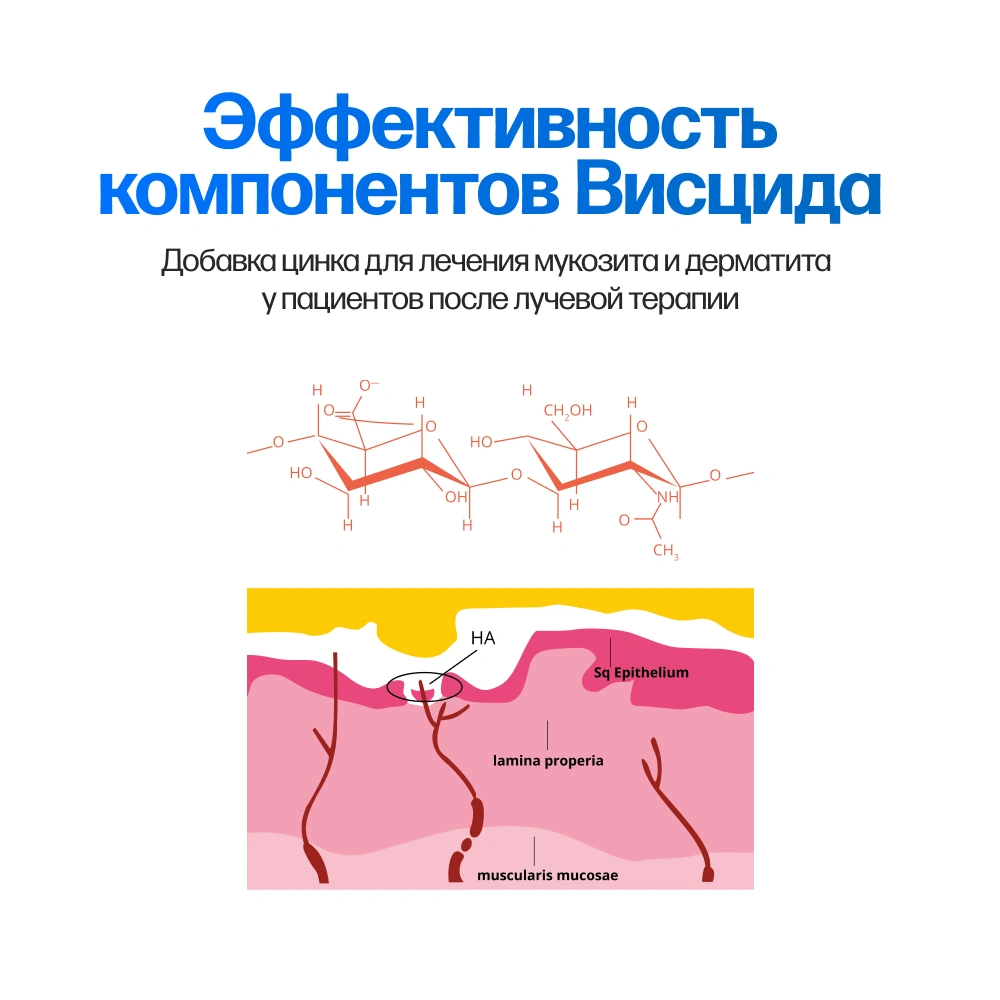- Гиалуронат натрия оказывает длительное увлажняющее действие на слизистую полости рта, способствует регенерации эпителия, в том числе и у пациентов, получающих лучевую терапию.