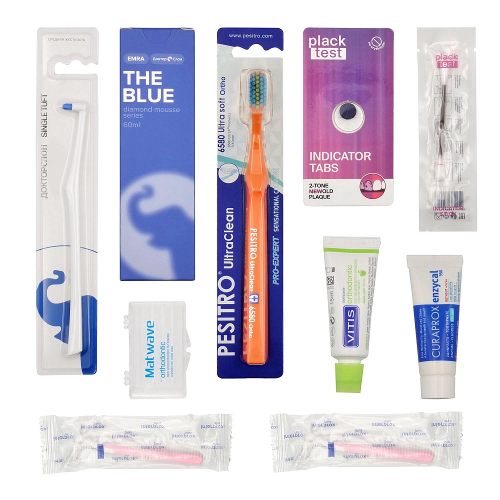 Ортодонтический набор № 1 — комплексное решение для ухода за полостью рта во время ортодонтического лечения. Он разработан специалистами магазина Докторслон.ру при участии врачей-ортодонтов и гигиенистов.