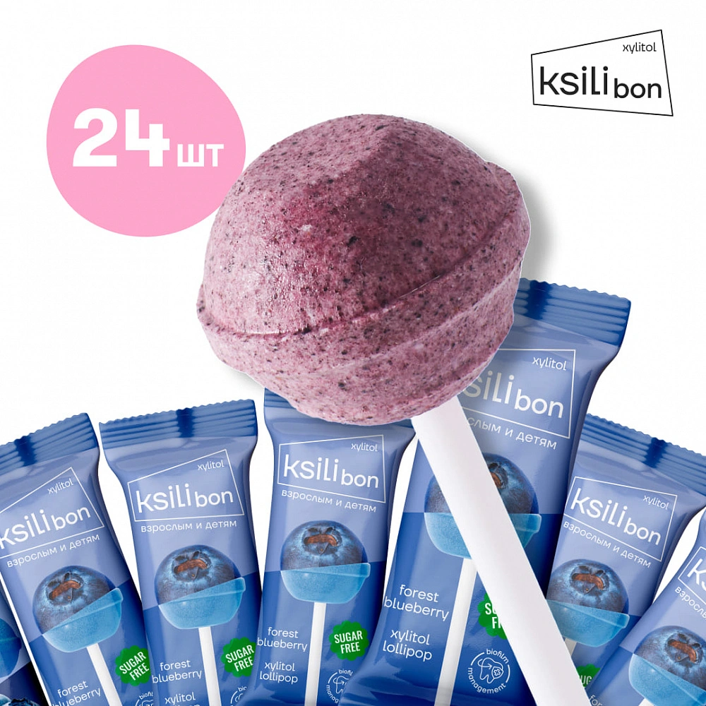 Леденец на палочке Ksilibon Lollipop Голубика, 24 шт.