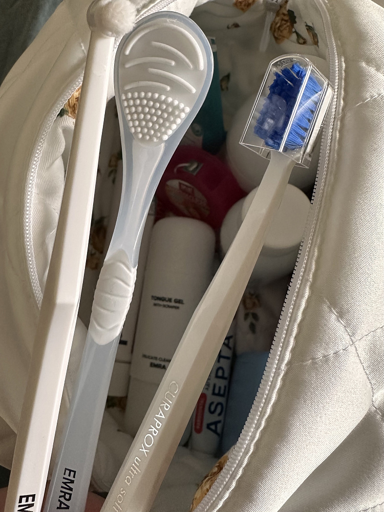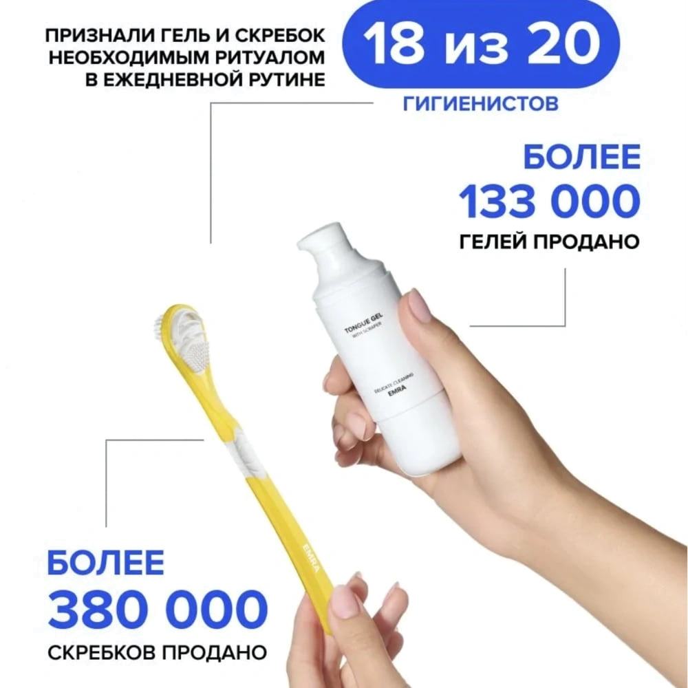 Чистить язык от налета нужно хотя бы раз в день, потому что в этом налете тоже размножаются бактерии, провоцирующие кариес, стоматит и гингивит. Использовать для этого обычные пасты — не лучшая идея, обычно в них слишком много ментола. Мягкий состав Delicate Cleaning Gel полностью растворяет налет и поддерживает микробиом слизистой оболочки, а щетка Scraper удаляет все лишнее, не повреждая нежную кожу.