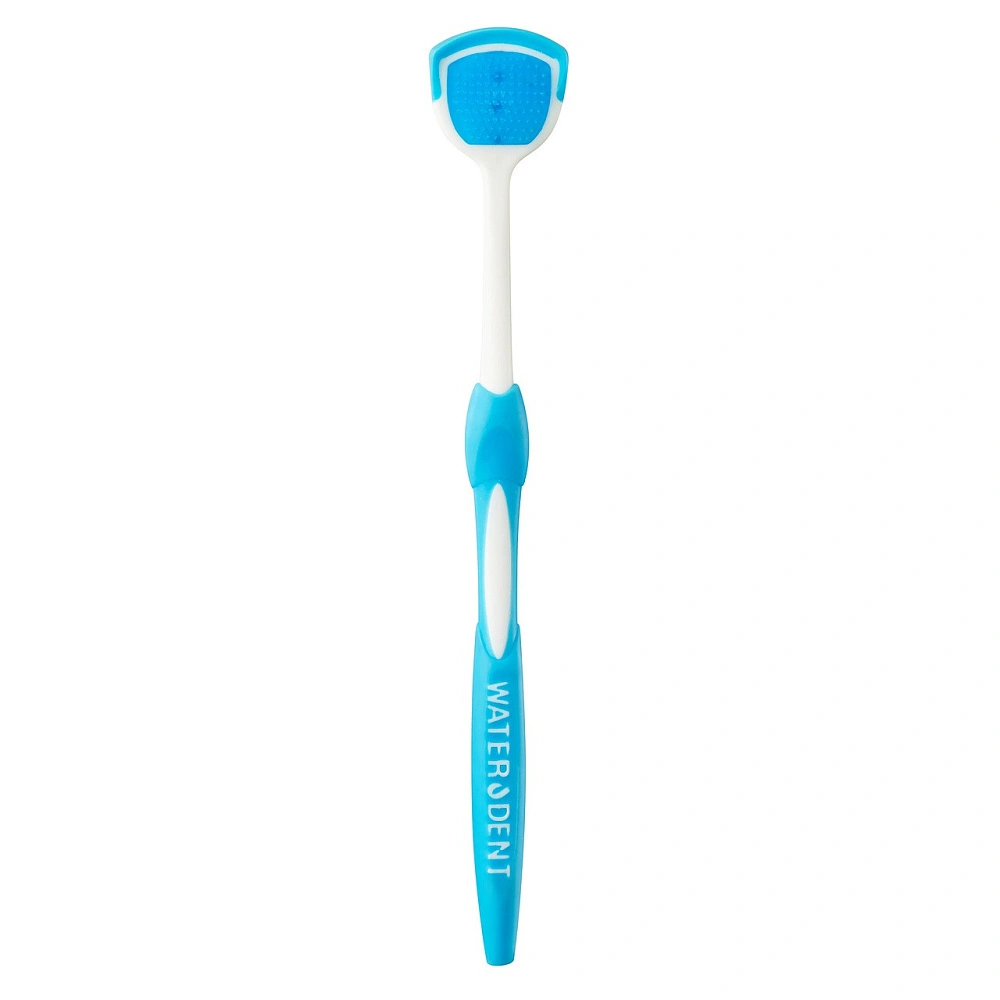 Щетка скребок для чистки языка WATERDENT с мягкой массажной щетиной. Щетка + скребок для языка 2в1 повышают эффективность очищения и позволяют удалять налет. Бережно удаляет бактериальный налет, являющийся причиной несвежего дыхания и заболеваний полости рта, десен, пародонта.