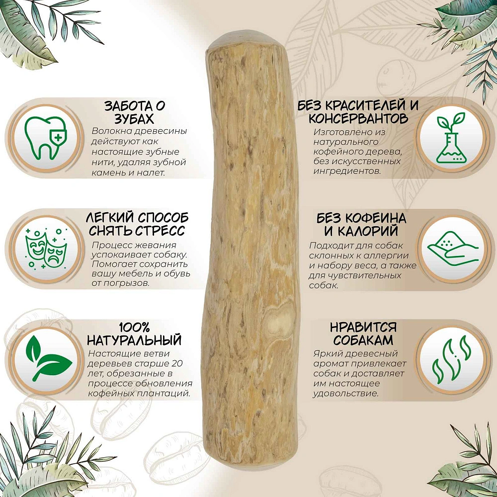 Coffee Wood — натуральная жевательная палка для собак из древесины кофейных деревьев Вьетнама. Продукт удовлетворяет естественный инстинкт жевания и помогает заботиться о здоровье зубов питомца.