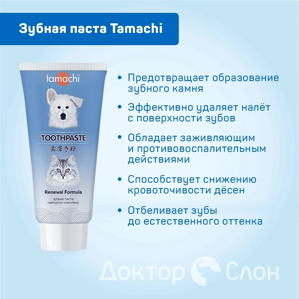 Зубная паста Tamachi представляет собой специализированное средство для ухода за полостью рта кошек и собак. Продукт эффективно удаляет налет с поверхности зубов и предотвращает образование зубного камня, благодаря комплексному действию активных компонентов. Формула Renewal Formula с гиалуроновой кислотой обеспечивает комплексный уход за полостью рта вашего питомца, поддерживая здоровье зубов и десен.