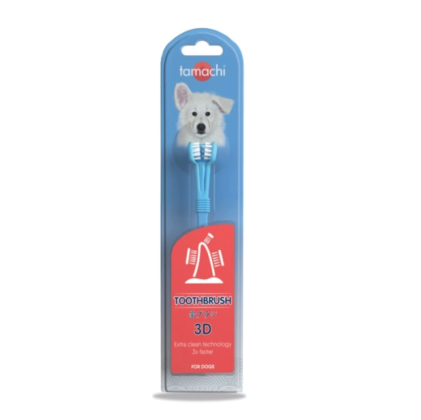 Тройная зубная щётка Tamachi эффективно и быстро очищает зубы от налёта благодаря своей тройной чистящей поверхности, а мягкие щетинки бережно относятся к дёснам животного, не травмируя их.