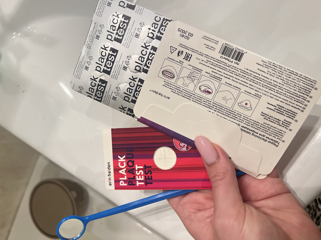 Двукомпонентный индикатор окрашивает свежий налёт в розовый цвет, и застарелый – в синий. Используйте индикаторы PlackTest 2-3 раза в неделю для контроля качества чистки и определения проблемных зон.