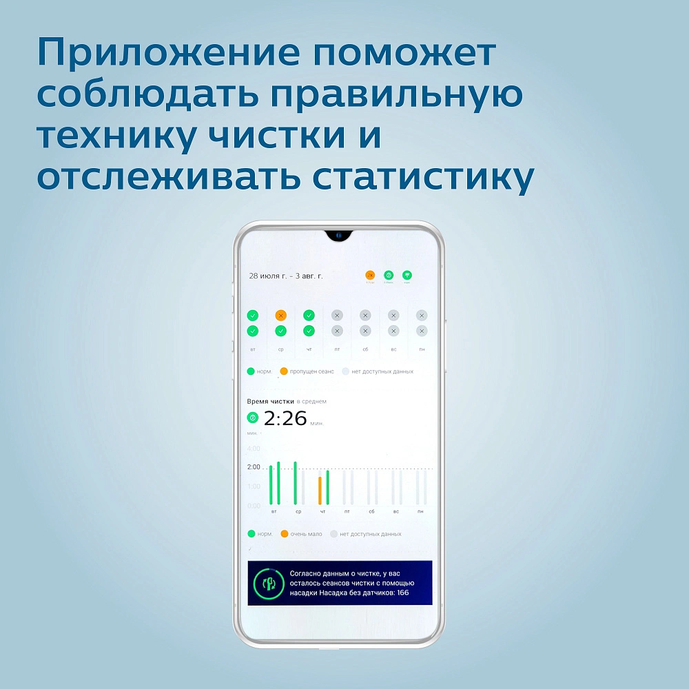 Технология BrushSync обеспечивает оптимальный выбор режима и уровня интенсивности чистки для достижения максимального эффекта.