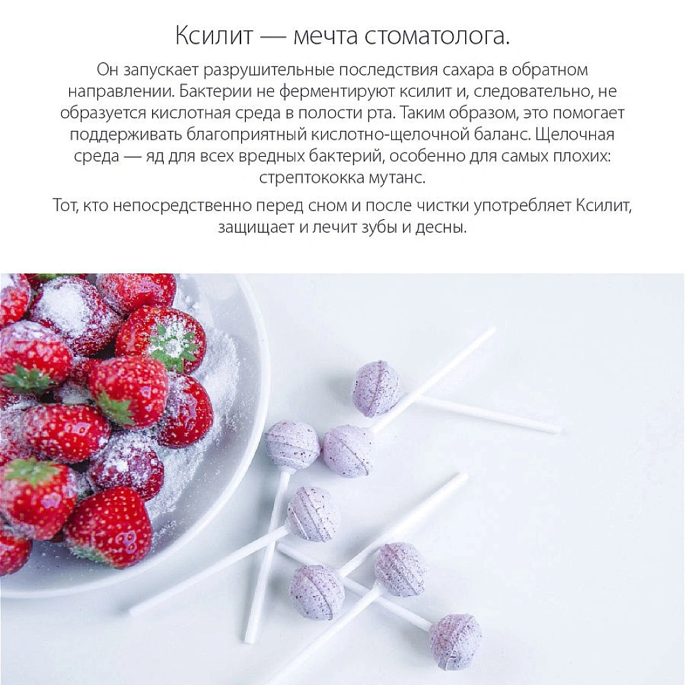 Леденец содержит только натуральные ингредиенты. Не содержит аспартам и другие синтетические подсластители, глютен, лактозу, сахар, ГМО.