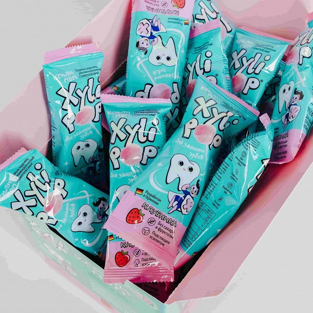 Состав: ксилит, изомальт, гуммиарабик, экстракт клубники, лактатные соединения, лимонная кислота, стеарат магния, краситель: красная свеча.