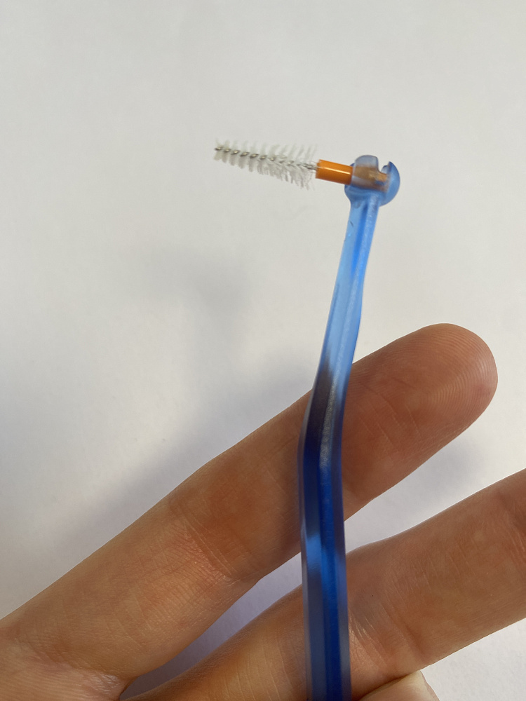 Диаметр ворсинок ёршика. должен быть в 3-4 раза больше ширины межзубного промежутка. Это позволяет щетинкам достаточно плотно соприкасаться с боковыми зубными поверхностями без риска повреждения эмали и десен стержнем.