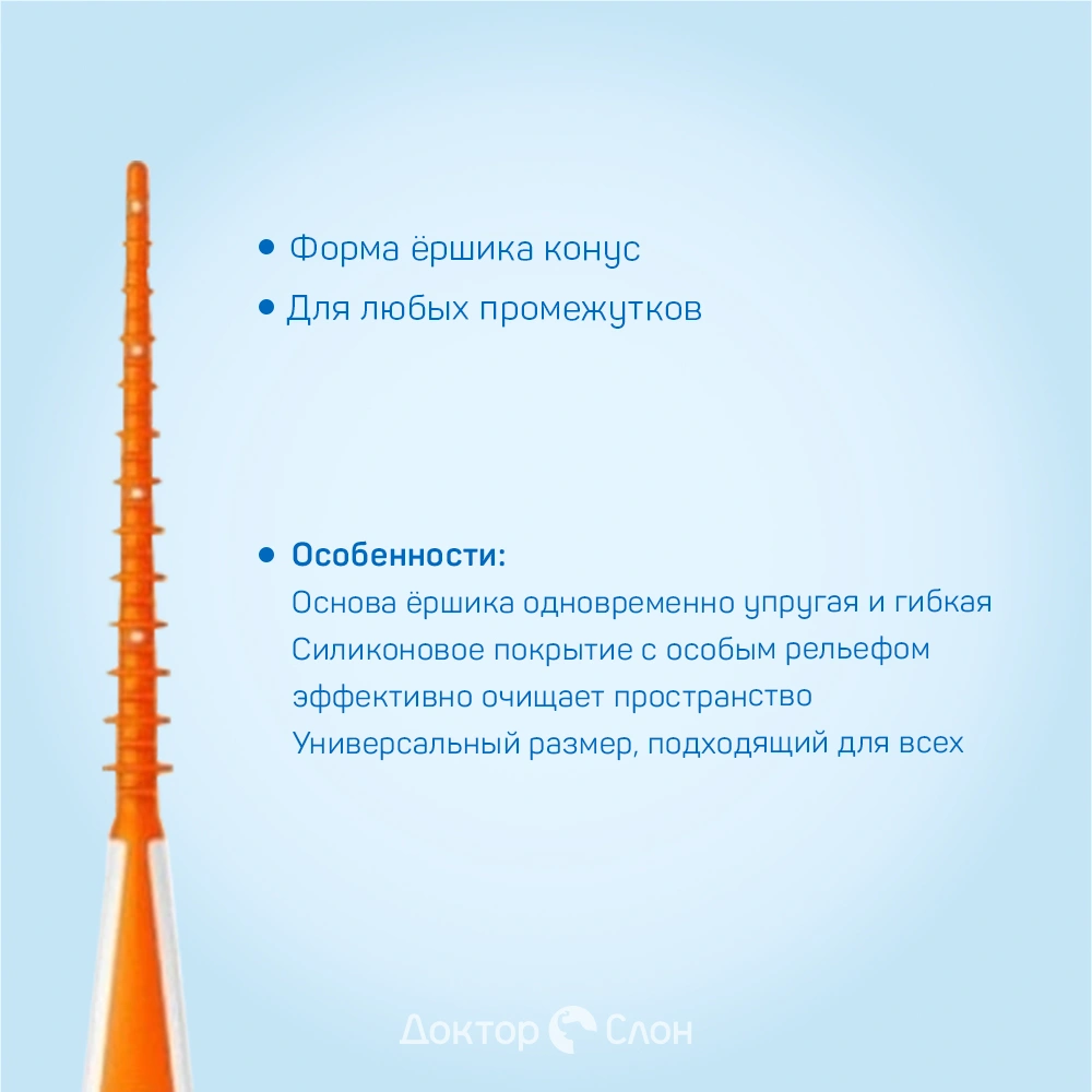 Диаметр ворсинок ёршика. должен быть в 3-4 раза больше ширины межзубного промежутка. Это позволяет щетинкам достаточно плотно соприкасаться с боковыми зубными поверхностями без риска повреждения эмали и десен стержнем.