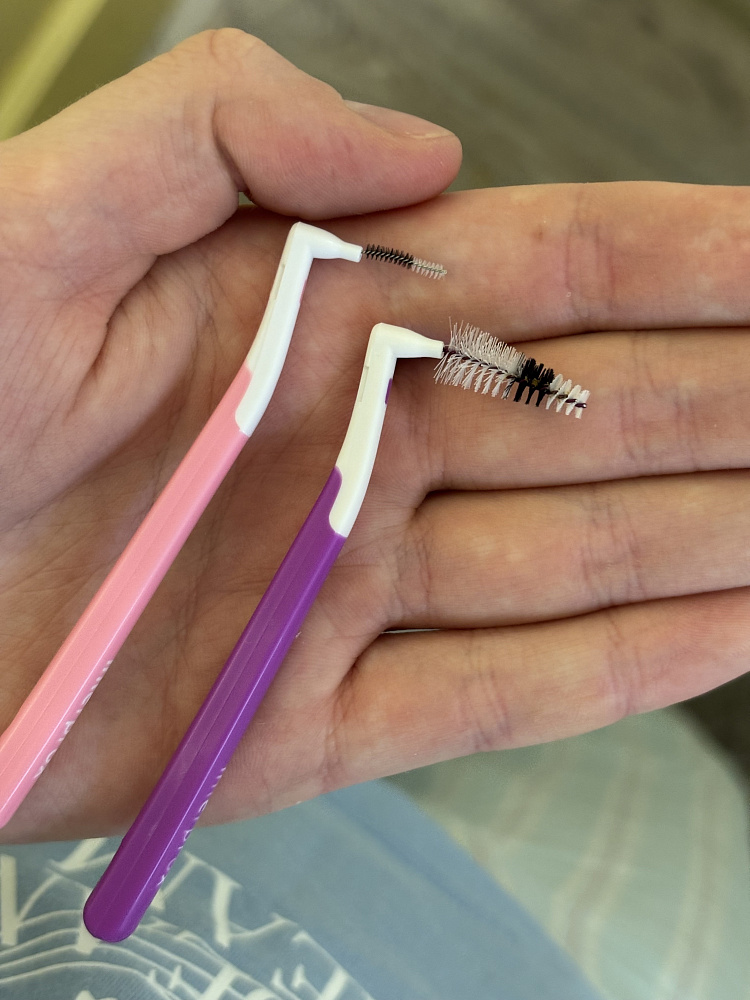 Диаметр ворсинок ёршика. должен быть в 3-4 раза больше ширины межзубного промежутка. Это позволяет щетинкам достаточно плотно соприкасаться с боковыми зубными поверхностями без риска повреждения эмали и десен стержнем.