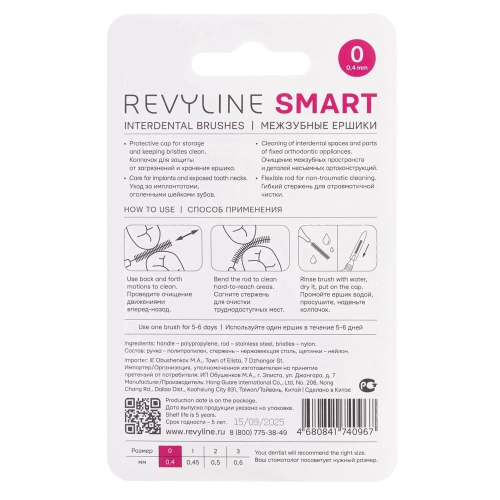 Набор ёршиков Revyline Smart (0,4 мм) розовые, 6 шт