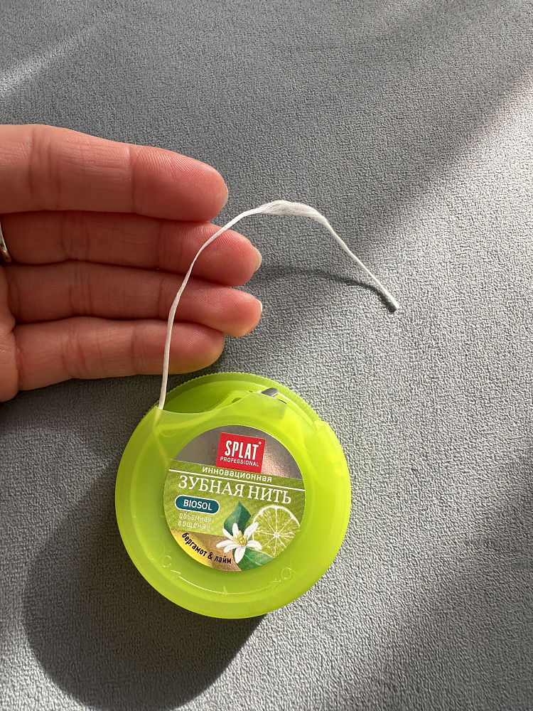 Почти всю жизнь пользовалась Oralb и думала, что моим зубам с минимальным наличием зубных щелей не подойдёт вощенная Splat. Но как же я ошибалась - эта нить вычищает мои зубные промежутки в разы лучше Oralb. Теперь это мой фаворит!