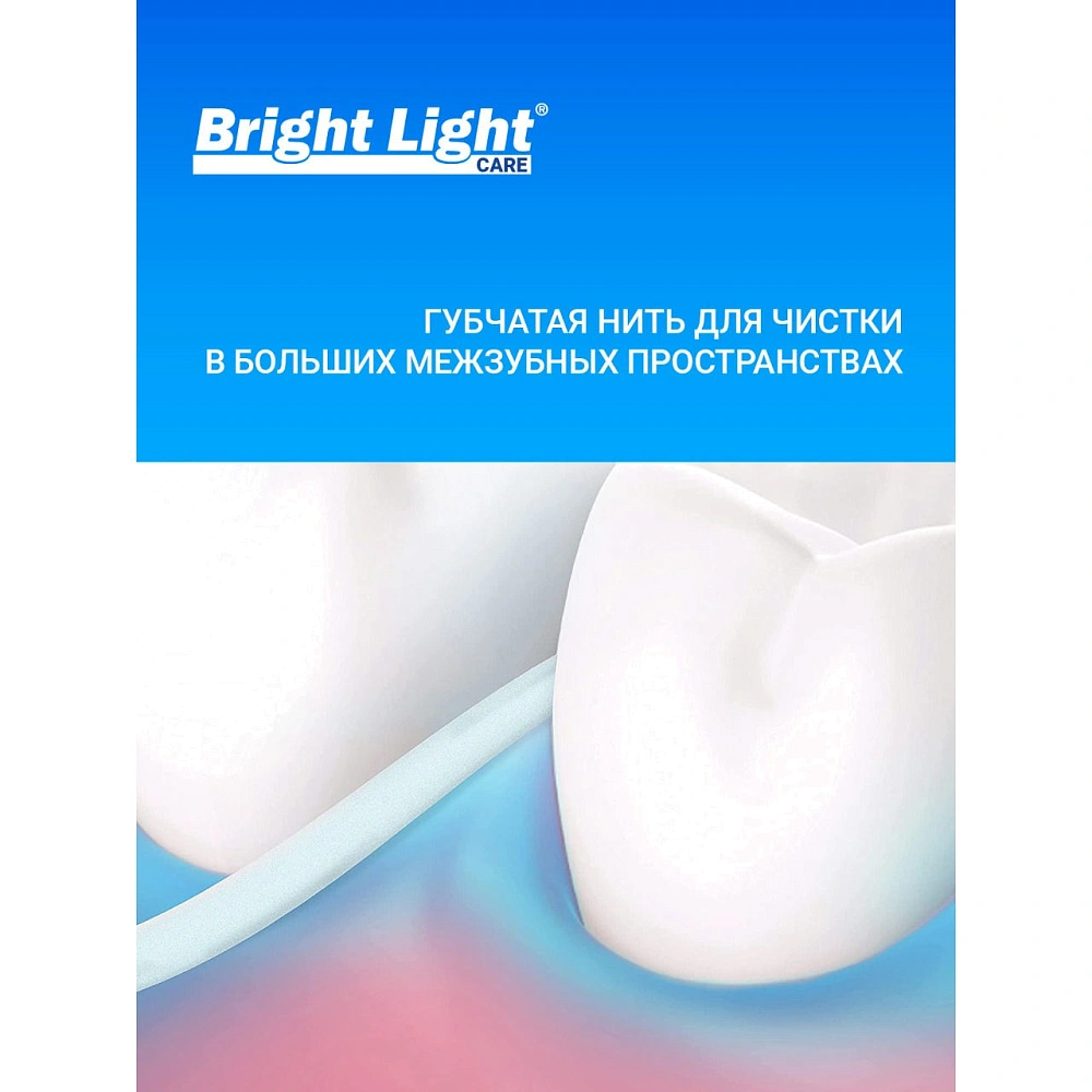 Благодаря наличию широкой рабочей части нить BRIGHT LIGHT Super Floss прекрасно подойдет для очистки широких межзубных промежутков, что обеспечит эффективное удаление бактериального налета, защиту от кариеса и проблем с деснами. С помощью обычного тонкого участка нити происходит очищение нормальных межзубных пространств, а также линии десен. Самая твердая часть нити BRIGHT LIGHT Super Floss поможет справиться с уходом за ортодонтическими конструкциями или под ними.