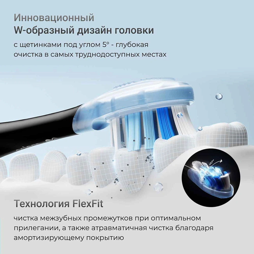 Инновационные насадки с технологией FlexFit гарантируют мягкую глубокую чистку для уникального ощущения чистоты даже в труднодоступных местах. Мягкая резина соединяет стержень щетки и головку, очищая поверхности зубов и труднодоступные места гибко, глубоко и компактно.