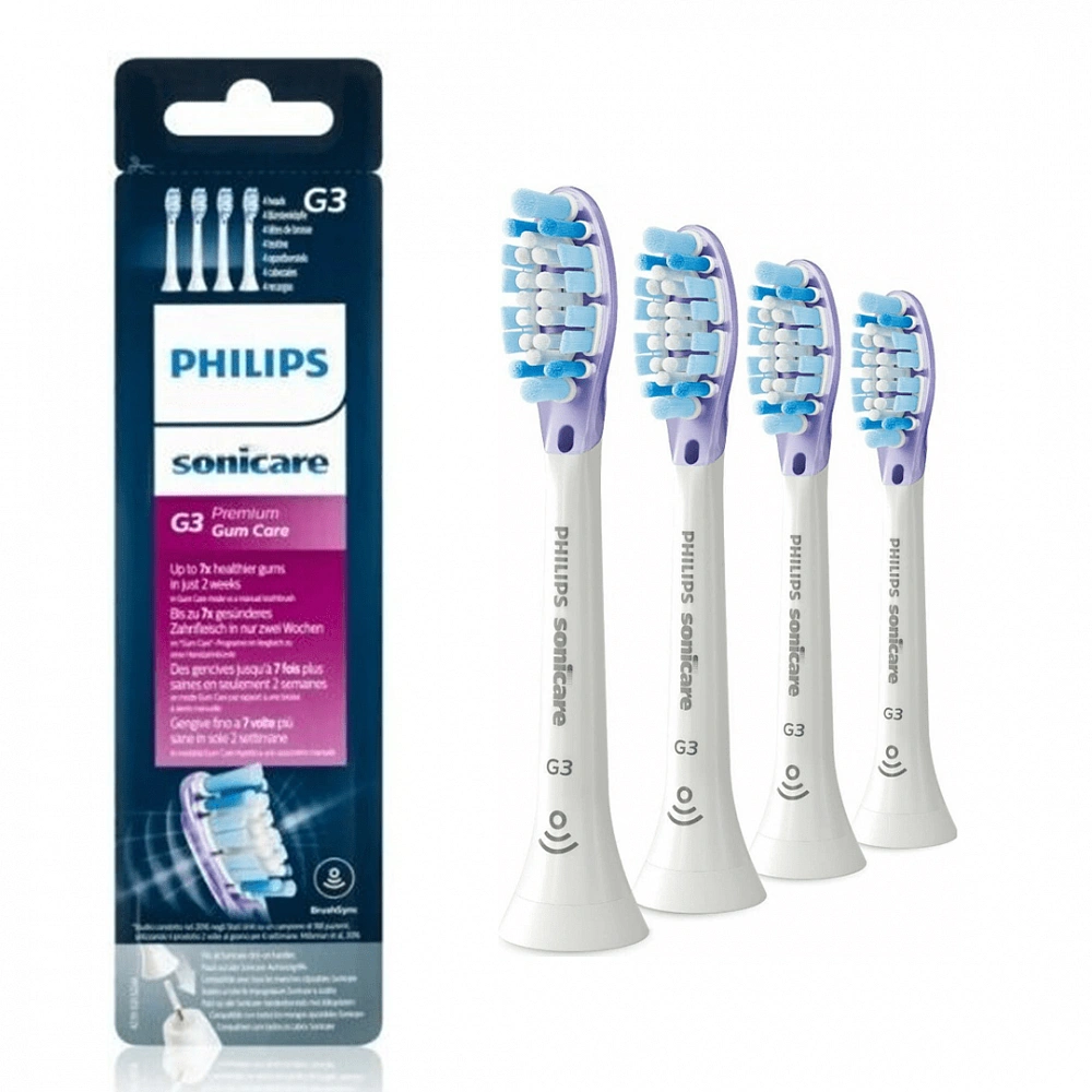 G3 Premium Gum Care - создана для тщательной и бережной чистки. Гибкие ребра и щетинки насадки Premium Gum Care поглощают избыточное давление во время чистки, поэтому десны не травмируются, даже если вы сильно давите на щетку. Щетинки эффективно удаляют бактериальный налет вдоль линии десен, обеспечивая профилактику воспаления.