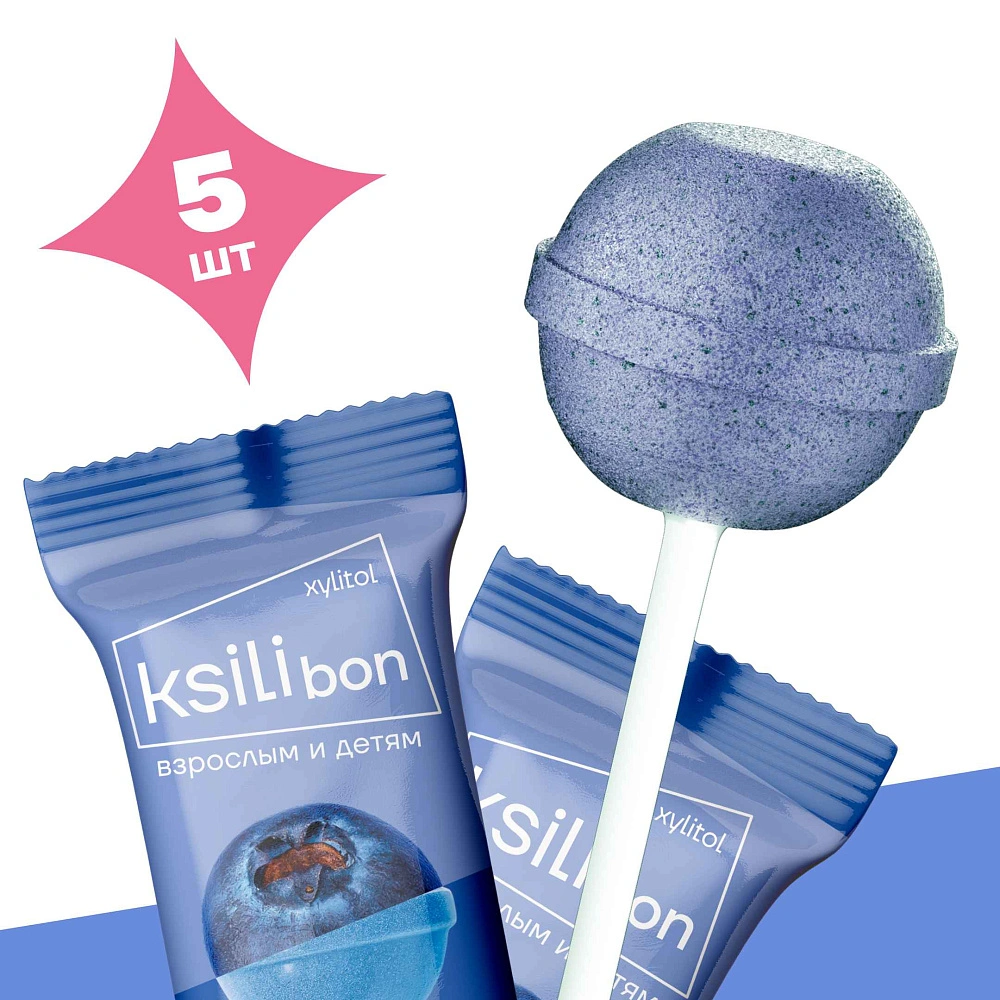 Леденец на палочке Ksilibon Lollipop Голубика, 5 шт.