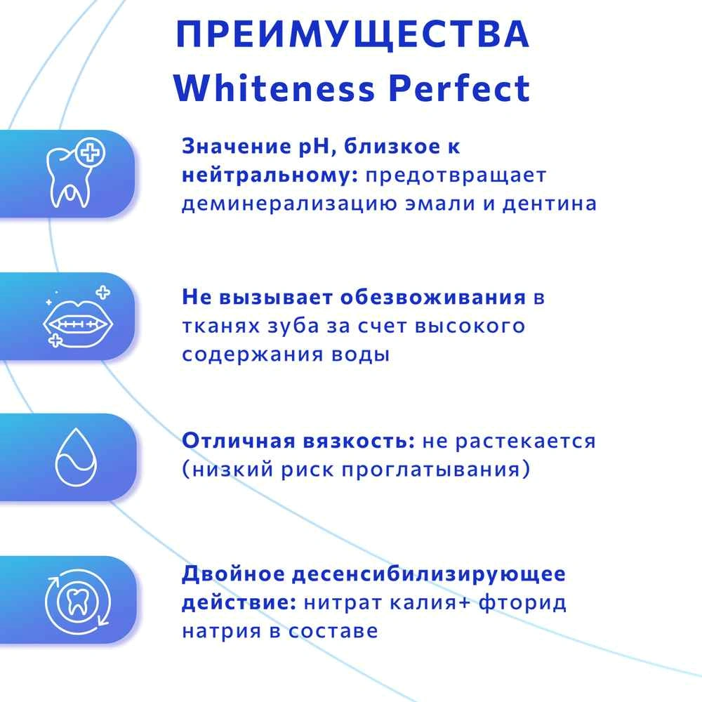 наиболее щадящее вещество для отбеливания зубов. Действует мягко, при этом обладает пролонгированным эффектом.