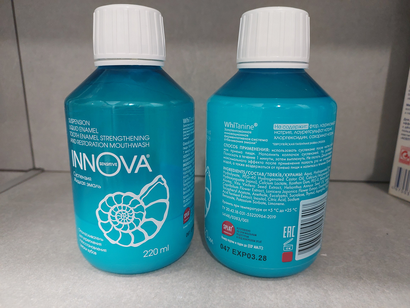 Суспензия "Жидкая Эмаль" серии Splat INNOVA - средство для укрепления и восстановления эмали. Клинически доказано, что средства INNOVA заметно снижают повышенную чувствительность зубов, эффективно восстанавливают и безопасно осветляют эмаль уже после первого применения.