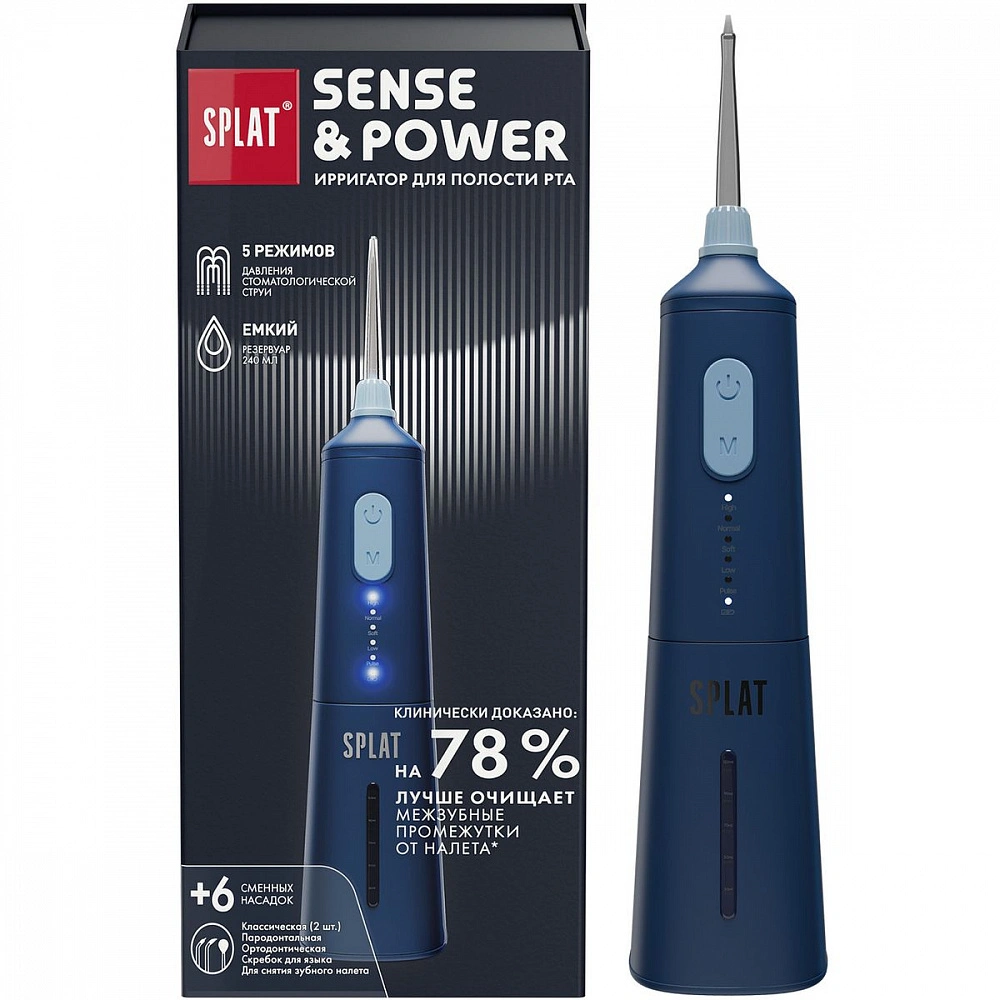 Беспроводной портативный ирригатор SPLAT Sense Power — это современное решение для профессионального ухода за полостью рта, оснащенное водонепроницаемым корпусом и встроенным таймером. Устройство эффективно удаляет налет с зубов и языка, борется с воспалением и кровоточивостью десен, устраняет неприятный запах и значительно упрощает уход за брекетами и имплантами. В комплект входят USB-зарядка и 6 сменных насадок, а эргономичный резервуар объемом 240 мл обеспечивает полноценную процедуру. Прибор работает в 5 режимах: от деликатного ежедневного ухода до интенсивного массажа десен.