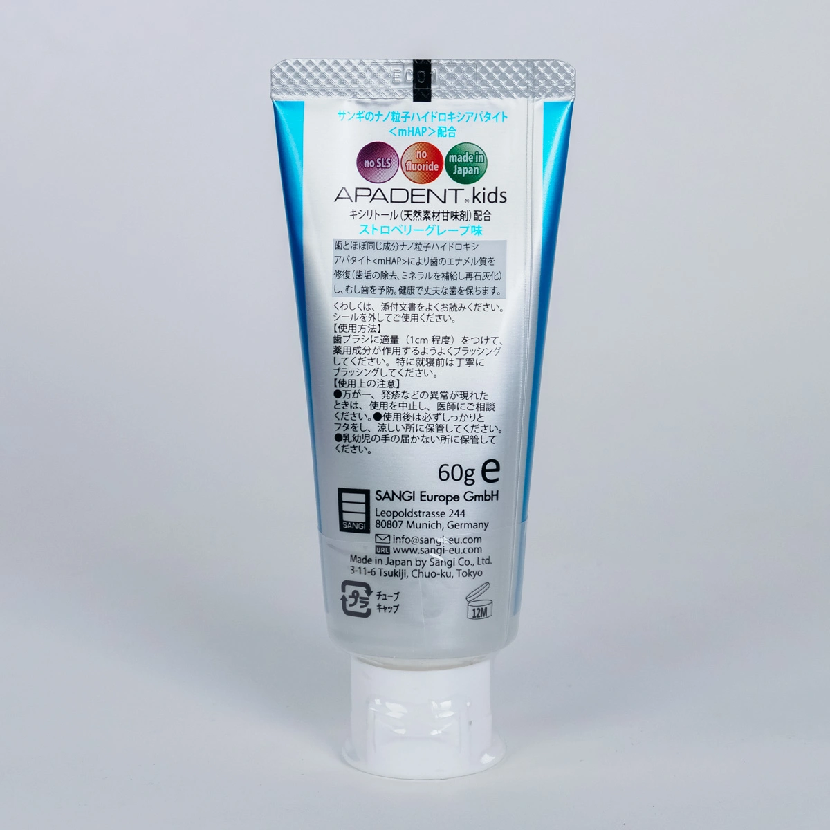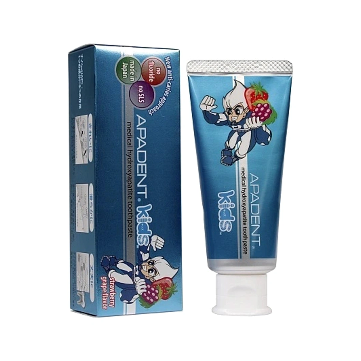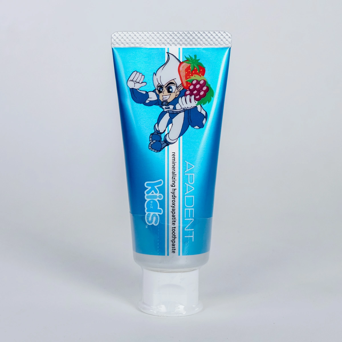 Японская лечебно-профилактическая зубная паста APADENT® Kids 0+ с Медицинским Нано-Гидроксиапатитом (NANO<mHAP>®) создана специально для детей с 0 лет и сочетает клинически доказанную эффективность, защиту от кариеса и безопасность. Без фтора. Замечательный землянично-виноградный вкус облегчает процесс приучения к чистке зубов - дети будут чистить зубы с удовольствием! Медицинский Нано-Гидроксиапатит® (NANO<mHAP>®) - минерал, из которого на 97% состоит зубная эмаль - благодаря нано-размеру частиц и высокой биосовместимости, глубоко реминерализует и укрепляет эмаль. В периоды прорезывания молочных зубов и сменного прикуса APADENT Kids является полноценным источником гидроксиапатита, способствуя более быстрому и качественному насыщению минералами эмали временных и постоянных зубов, предотвращает развитие кариеса на начальной стадии (белые пятна). Паста абсолютно безопасна при проглатывании и подходит для самых маленьких. Дизайн колпачка не предусматривает наличие фольги на горлышке тюбика.