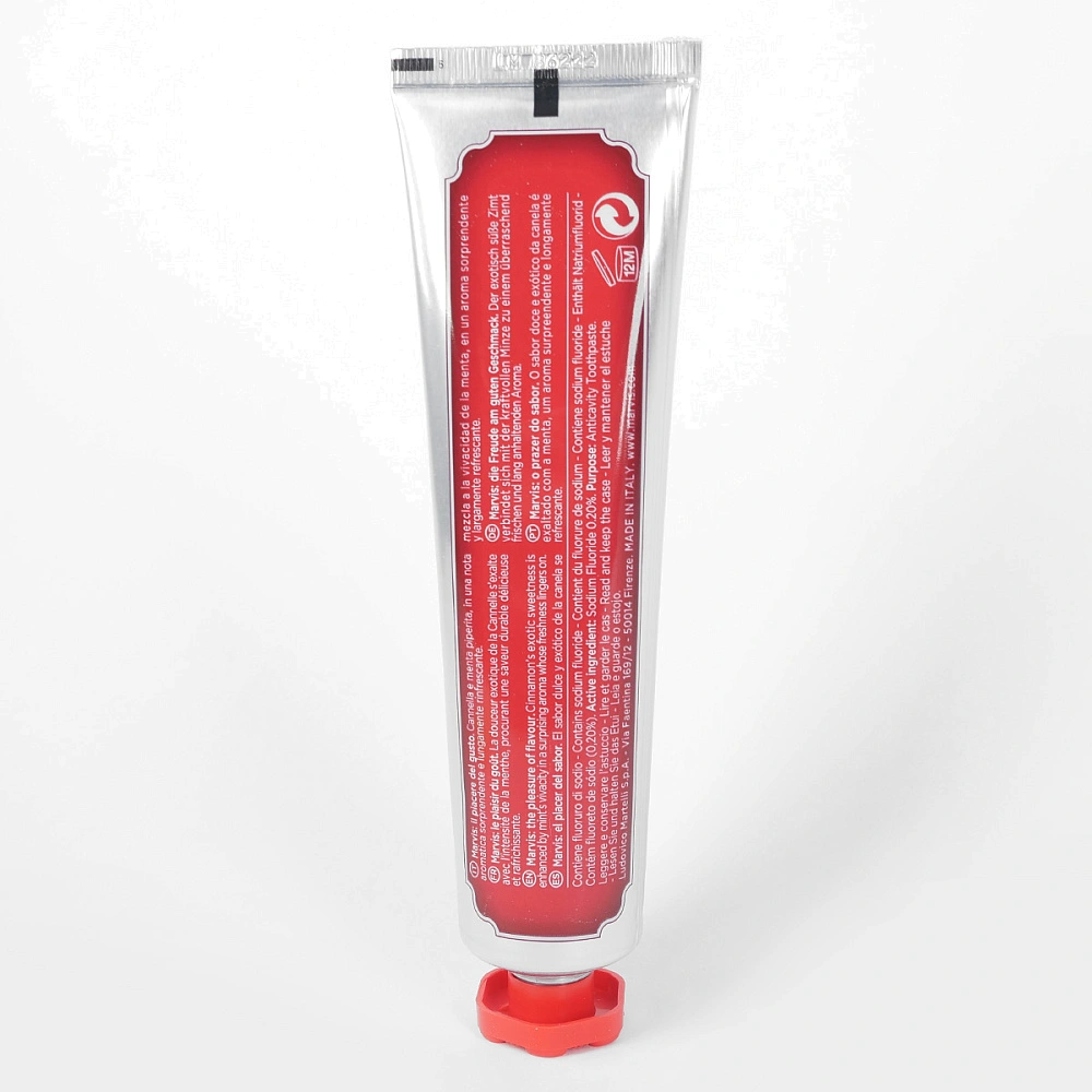 Еще одно достоинство паст Марвис - привлекательный ретро-дизайн упаковки. Матовый алюминиевый тюбик с изысканным колпачком - это маленькое произведение искусства, которое украсит вашу ванную комнату.