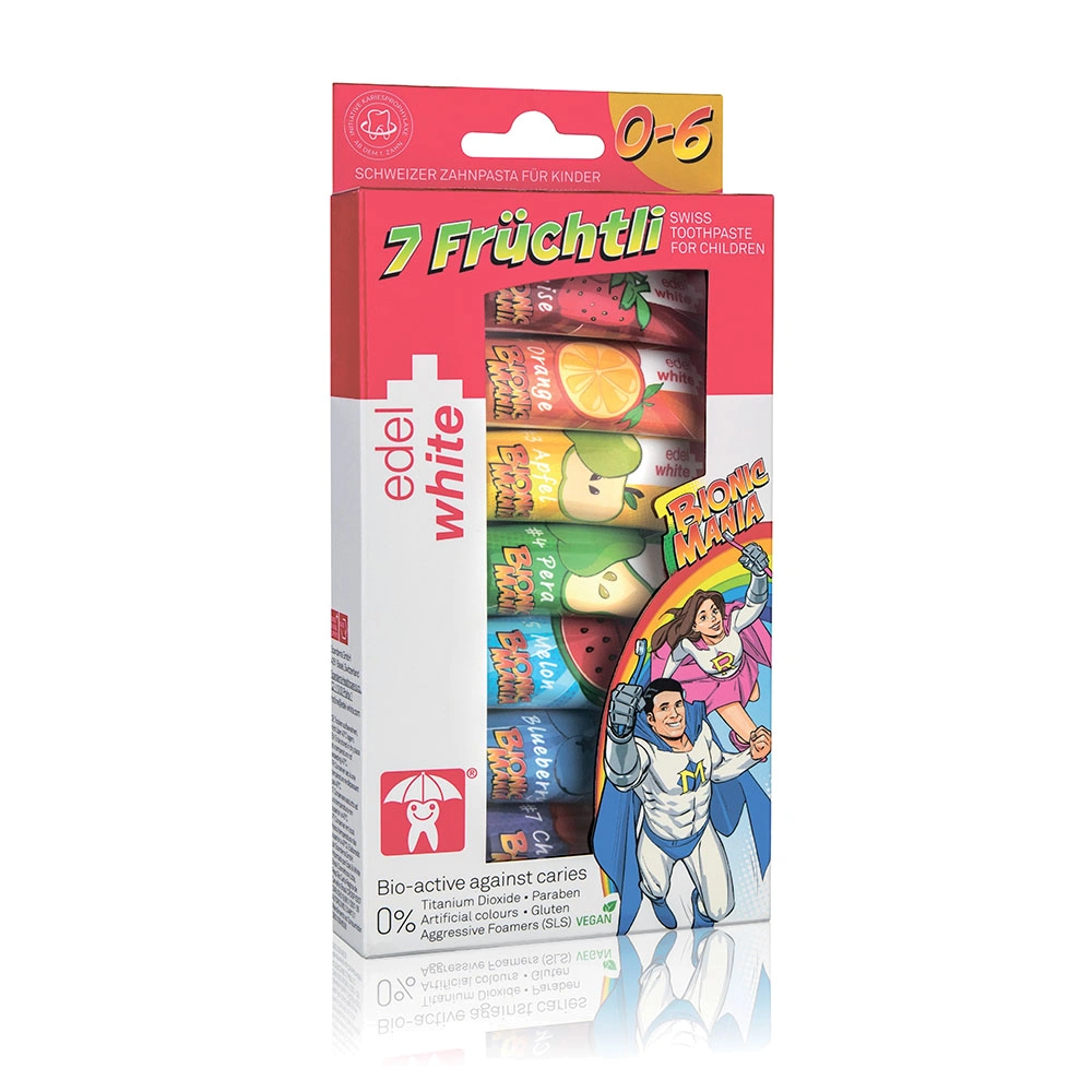 Набор детских зубных паст Edel white ассорти (7 шт x 9,4 мл)