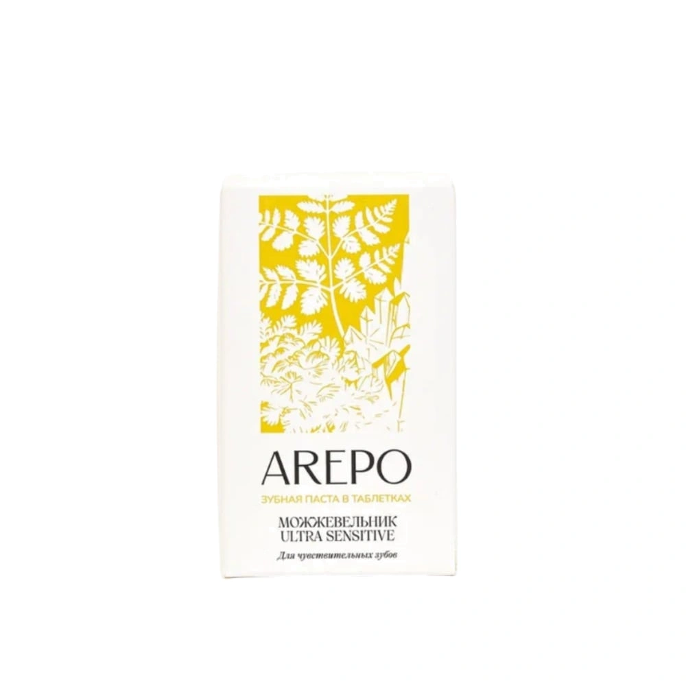 AREPO Можжевельник Ultra Sensitive — инновационная зубная паста в таблетках для бережного ухода за чувствительными зубами. В упаковке 55 таблеток, которые эффективно снижают чувствительность зубов благодаря гидроксиапатиту кальция и мягким абразивам. Паста обогащена эфирными маслами можжевельника и лицеи кубеба, обладающими антисептическим и обезболивающим действием. Формула с папаином и ксилитом помогает бороться с налетом и препятствует образованию кариесогенных бактерий. Удобная форма таблеток обеспечивает экономичный расход и экологичность использования.