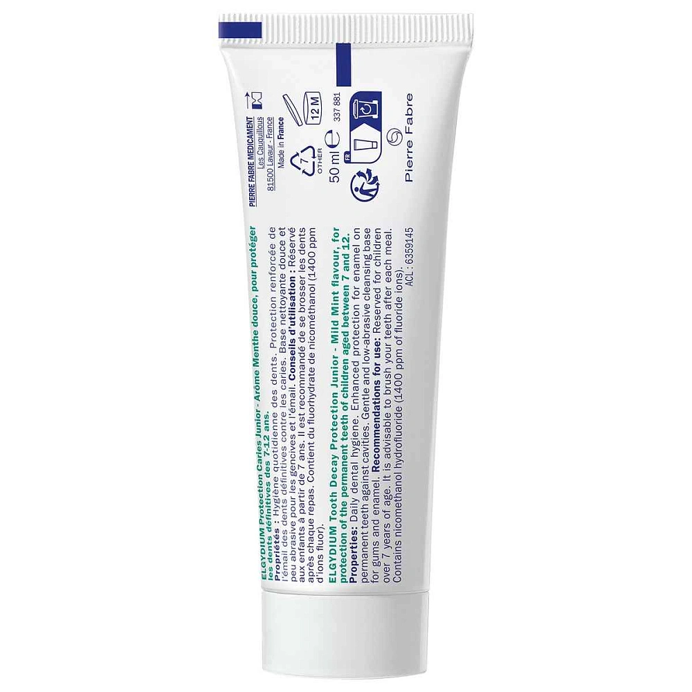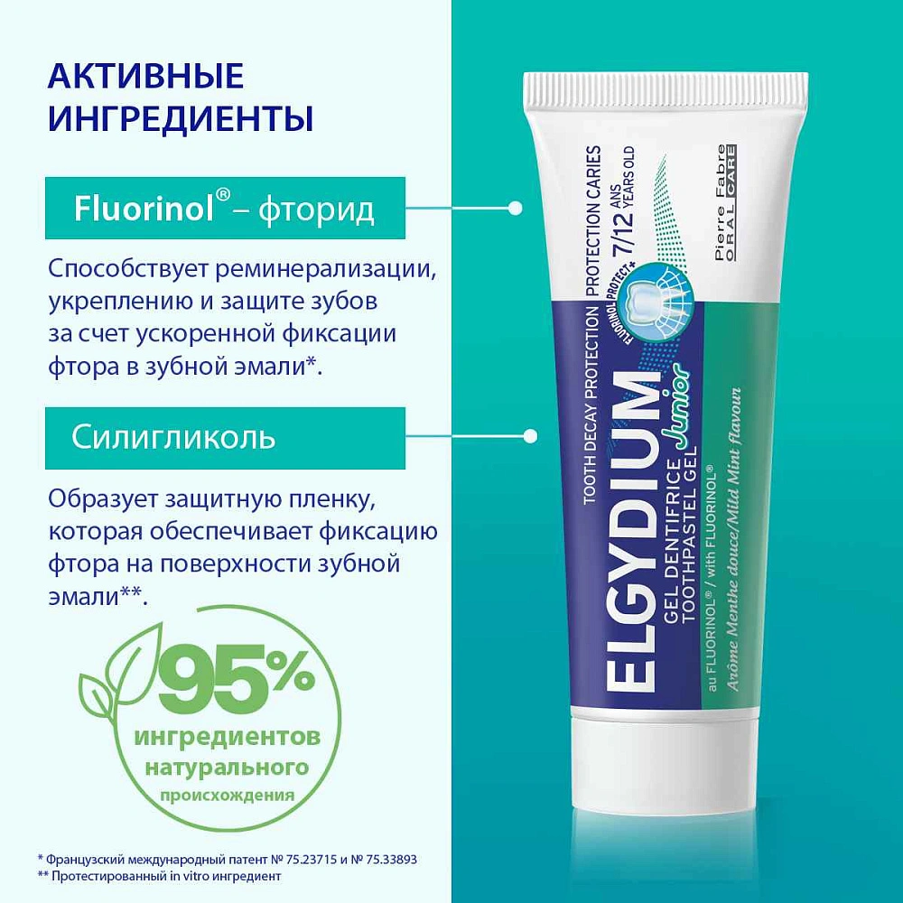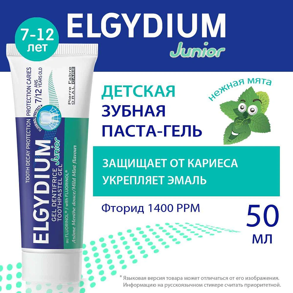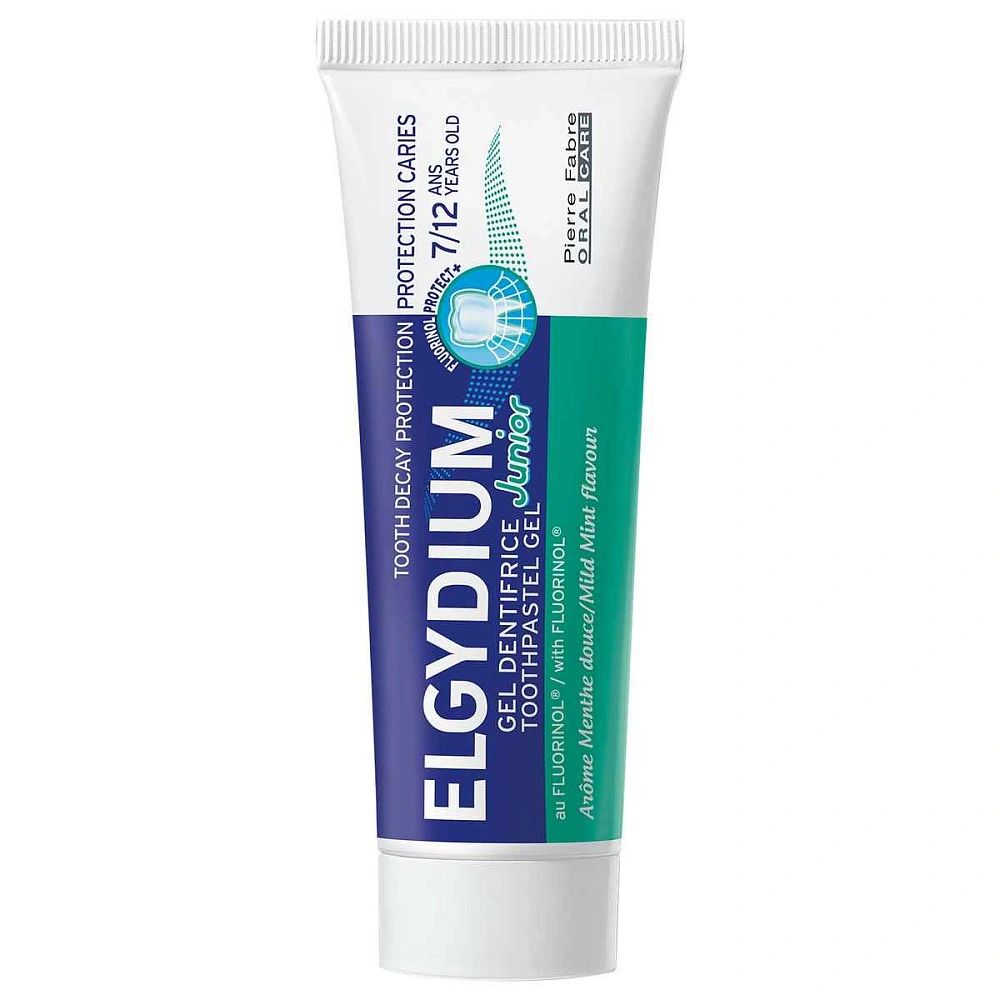 Мятная детская паста-гель Эльгидиум Junior Mild Mint против кариеса с нотками ароматной сладковатой ванили разработана французской учеными для детей и подростков от 7 до 12 лет.