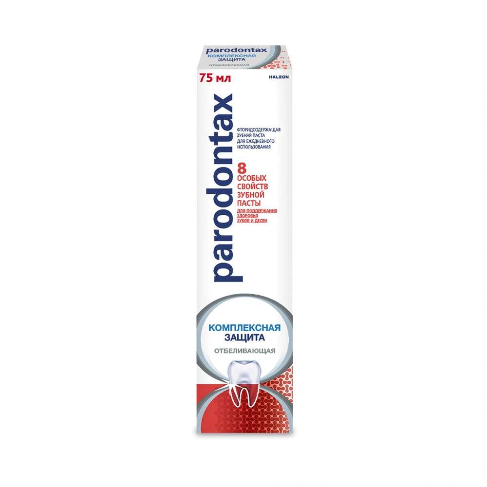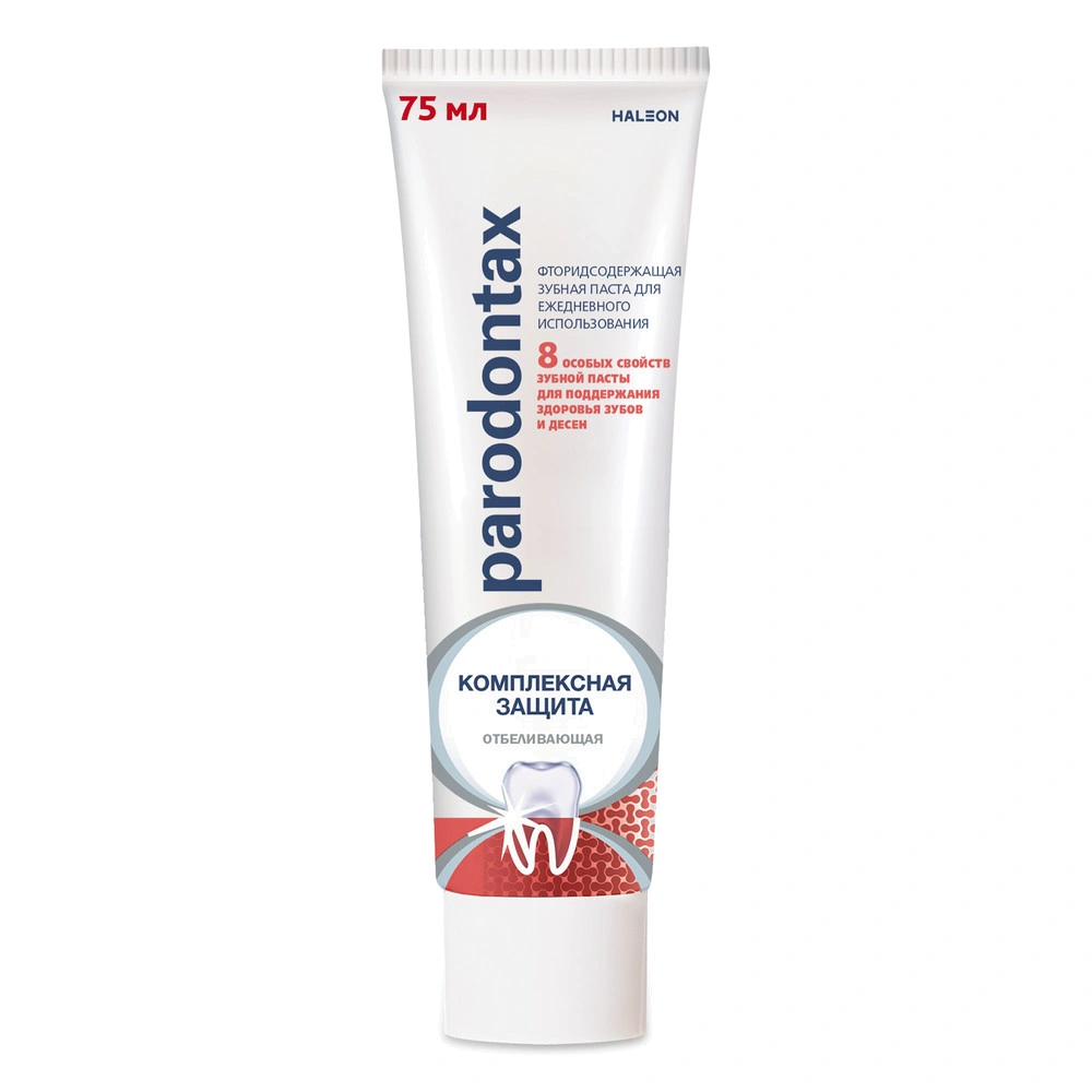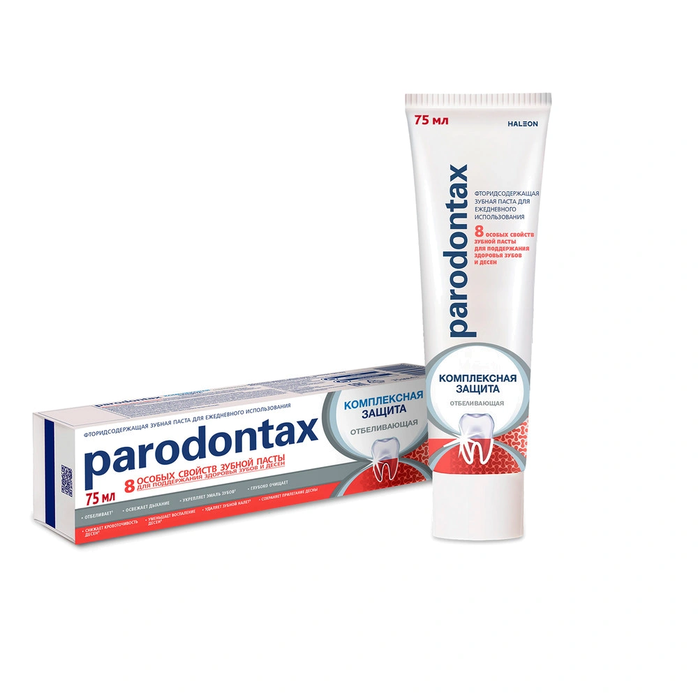 Parodontax Комплексная Защита Отбеливающая — зубная паста для ежедневного ухода за полостью рта, сочетающее в себе профессиональную заботу о здоровье десен и бережное отбеливание зубов.