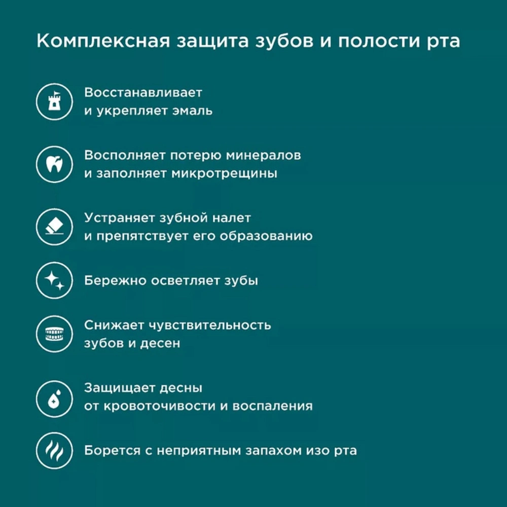 активные вещества встраиваются в структуру эмали, насыщая ее полезными минералами, уменьшают размножение бактерий