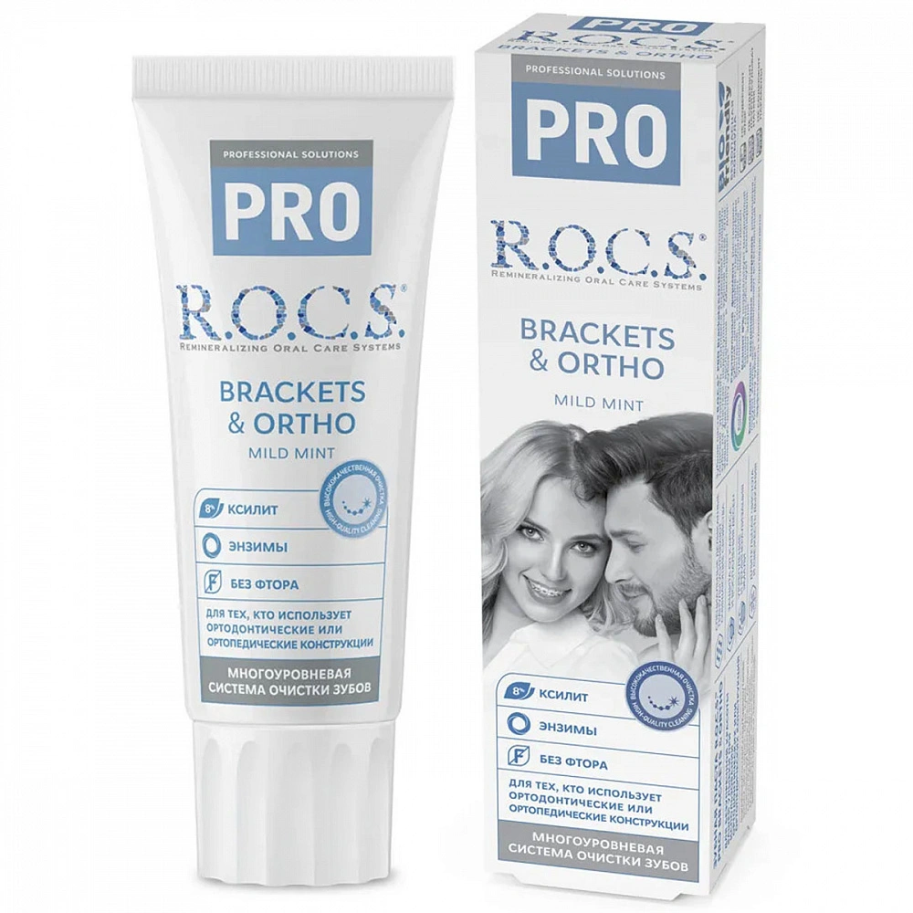 R.O.C.S. PRO Brackets & Ortho - это зубная паста обеспечивает эффективную и бережную очистку зубов и труднодоступных мест вокруг брекетов, предотвращает образование налета и кариеса, укрепляет эмаль и снижает воспаление десен. Способствуют поддержанию здоровья полости рта на протяжении всего периода ортодонтического лечения.