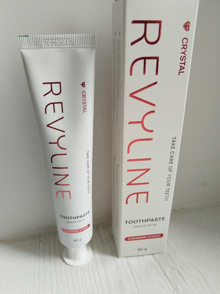 Revyline Crystal Клубника и персик — зубная паста со вкусом клубники и персика, которая превращает ежедневную гигиену в настоящее удовольствие. Обеспечивает комплексный уход за полостью рта, одновременно осветляя эмаль и защищая от основных стоматологических проблем при регулярном применении.