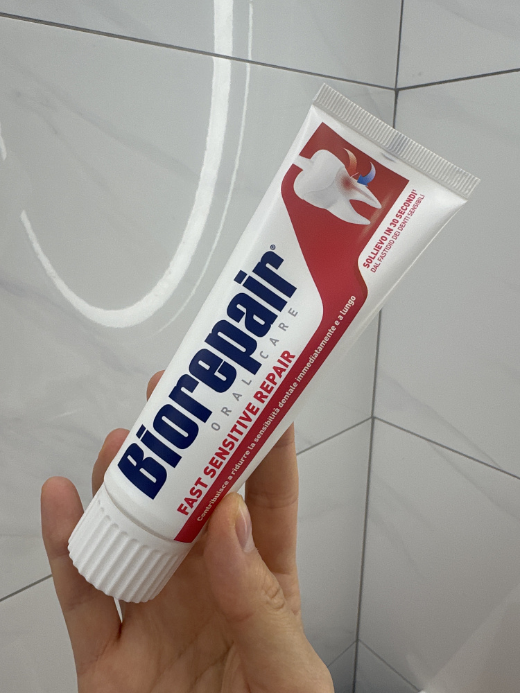 Biorepair Fast Sensitive Repair – реминерализирующая зубная паста, которая запечатывает открытые дентинные канальцы и быстро снижает чувствительность зубов. Продукты Biorepair содержат в составе активное вещество MicroRepair - микрокристаллы медицинского гидроксиапатита (цинк-замещенный-карбонат-гидроксиапатит). Он аналогичен естественному гидроксиапатиту, который входит в состав костей и зубов и составляет 96% зубной эмали. Кристаллы MicroRepair соединяются с эмалью и восстанавливают ее структуру, усиливая естественную защиту зубов. Паста снижает чувствительность зубов, так как гидроксиапатит запечатывает открытые дентинные канальцы, через которые проникают внешние раздражители, вызывающие боль.