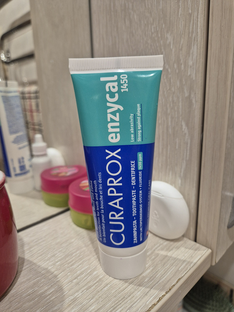 CURAPROX Enzycal 1450 - лечебно-профилактическая зубная фторсодержащая паста, в основе действия которой лежат уникальные технологии защиты от кариеса. Enzycal - настоящий швейцарский продукт. Зубная паста работает так же, как иммунитет человека. Все её компоненты входят в состав биологических жидкостей организма - слюны, грудного молока, слез. Паста обладает широким спектром действия.