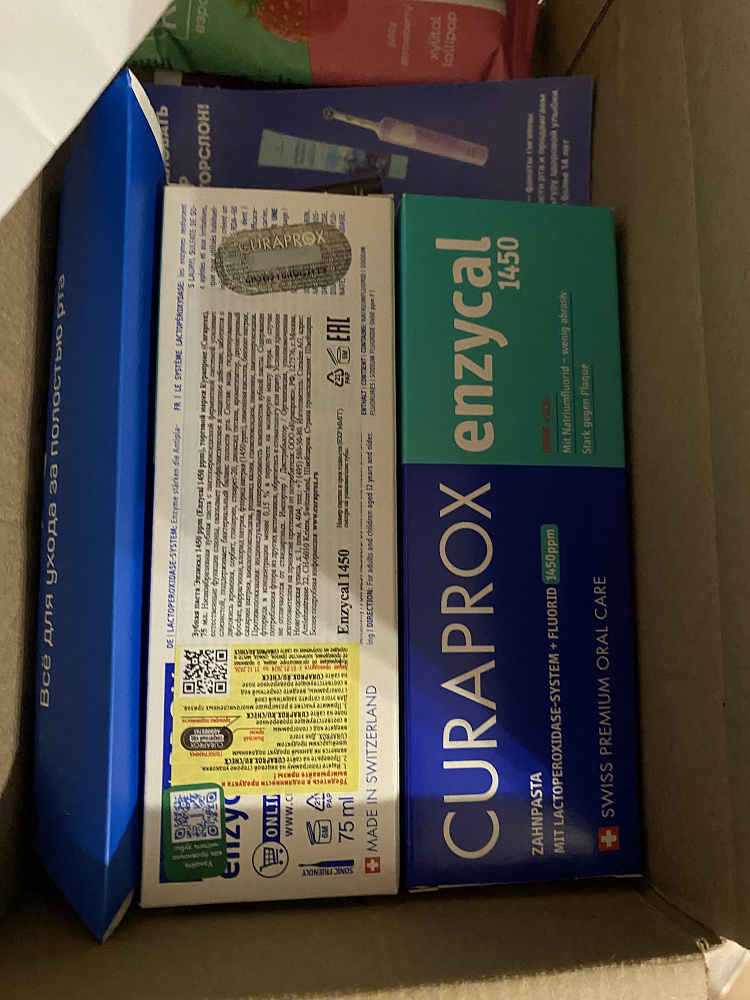 Популярная зубная паста Curaprox Enzycal представлена в трёх видах: Enzycal 1450 (содержание фторидов - 1450 ppm), Enzycal 950 (содержание фторидов - 950 ppm) и Enzycal Zero (без фтора).