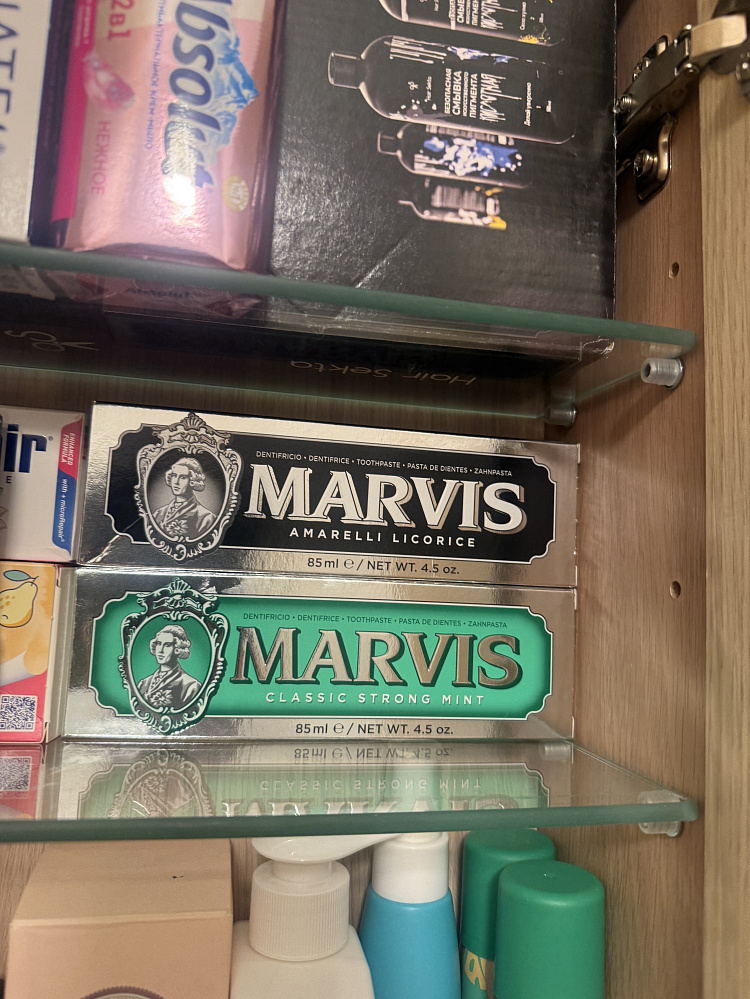 Marvis — зубная паста родом из Флоренции с более чем 60-летней историей. Marvis — это отбеливающий эффект, стойкий мятный аромат и фантастическое сочетание самых невероятных вкусов. На сегодняшний день в коллекцию Marvis входят как традиционные мятные пасты, так и их самые неожиданные сочетания с имбирем, корицей, жасмином, лакрицей, апельсином и даже ревенем. Дизайн упаковок бренда выполнен в винтажном стиле и заслуживает отдельного внимания.