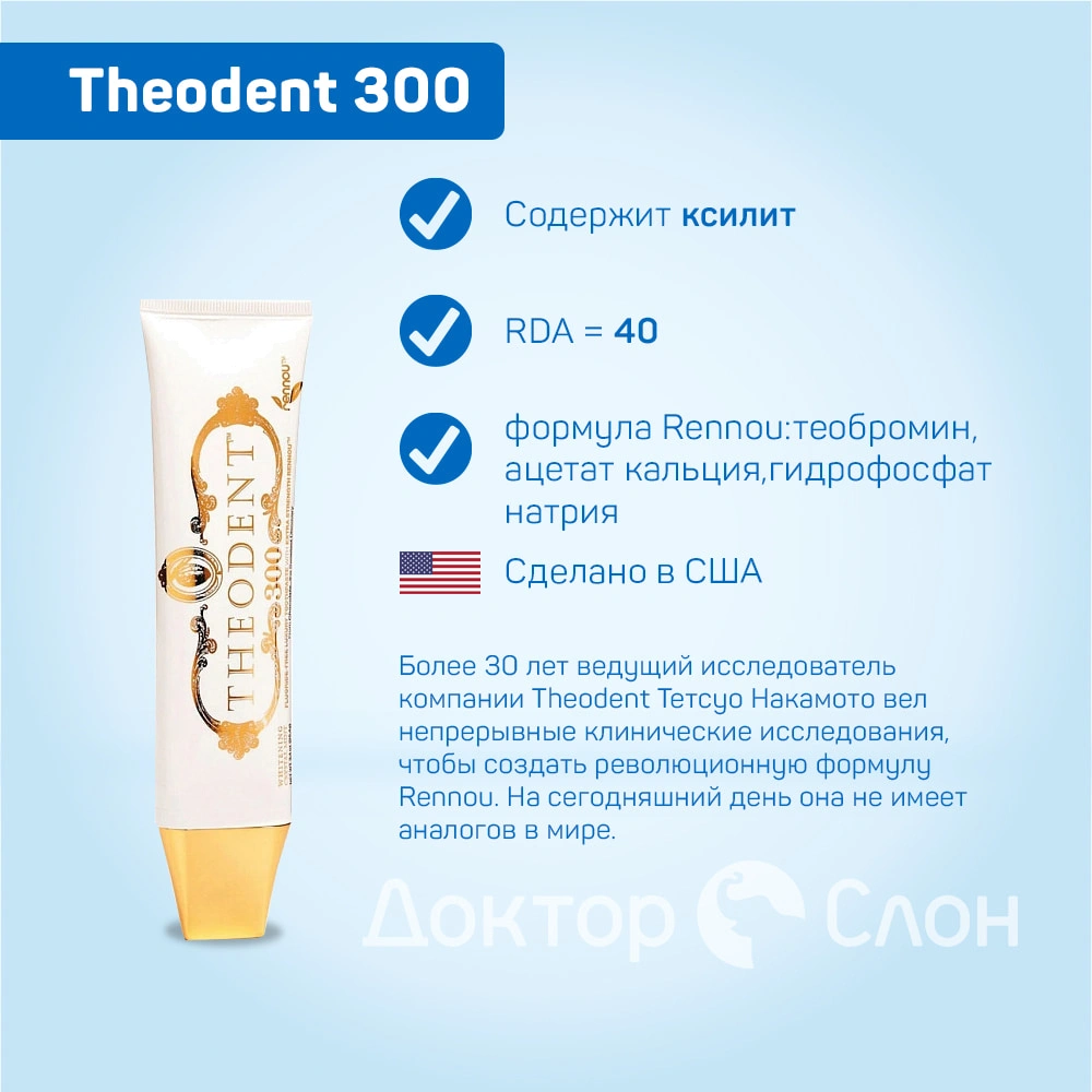 Theodent 300 - высококачественная зубная паста класса люкс, лучшая разработка компании Theodent. Содержание уникального вещества теобромина в ней в 300 раз больше, чем в пасте Theodent Classic.