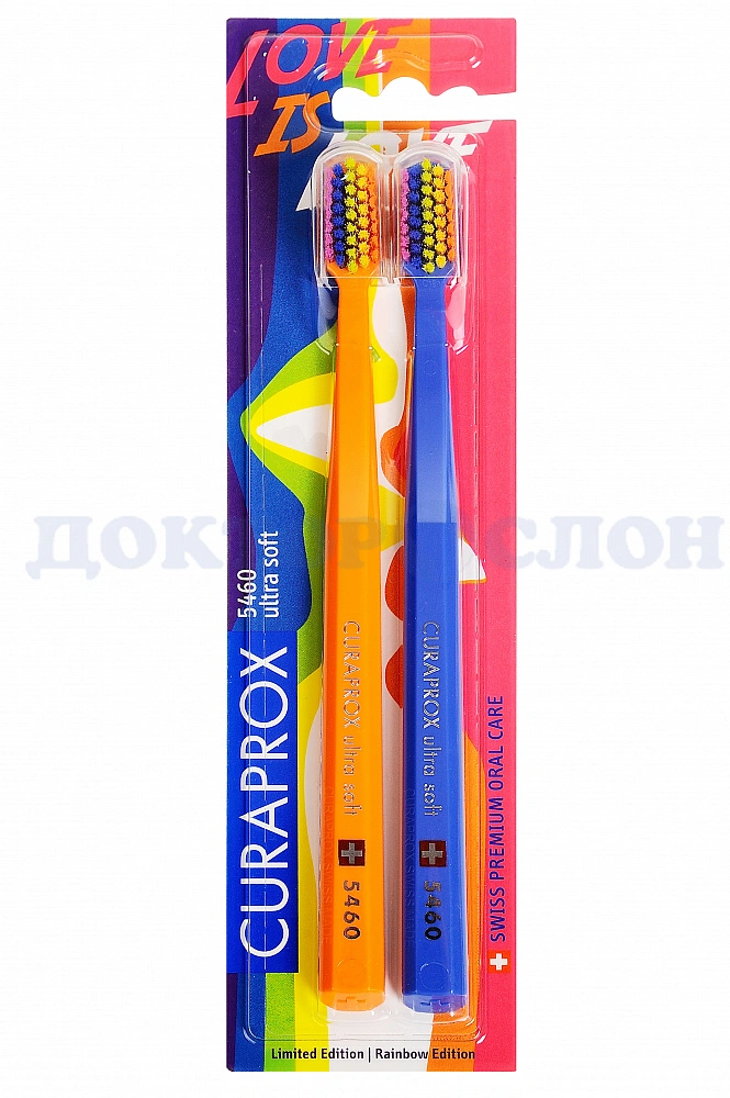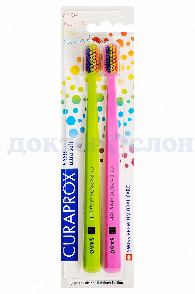 Лимитированная серия RainBow, набор из двух ультрамягких зубных щеток CS 5460 Ultra Soft c разноцветной щетиной.