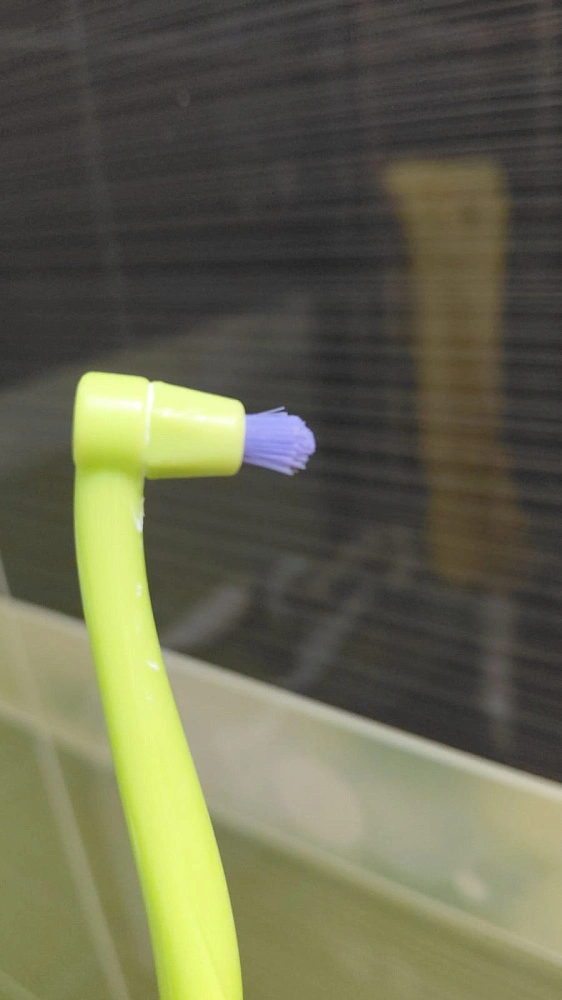 Монопучковая зубная щётка Splat Smilex Ortho — это инновационный продукт, специально разработанный для людей, использующих ортодонтические конструкции. Оснащённая сменными головками, эта щётка обеспечивает отличное очищение зубов в труднодоступных местах, что особенно важно для поддержания гигиены во время ортодонтического лечения. 4 сменные насадки-головки с 2 видами подрезки щетины позволяют использовать монопучок как для межзубных промежутков, так и для боковых и жевательных поверхностей зубов. Головка с заостренной подрезкой щетины проникает в узкие межзубные промежутки, а головка с закругленной щетиной имеет большую площадь соприкосновения с боковой и жевательной поверхностями зуба. Эргономичная ручка монопучка сконструирована так, чтобы можно было вкручивать головку с щетиной с двух сторон – для подбора удобного угла расположения монопучка при гигиене полости рта
