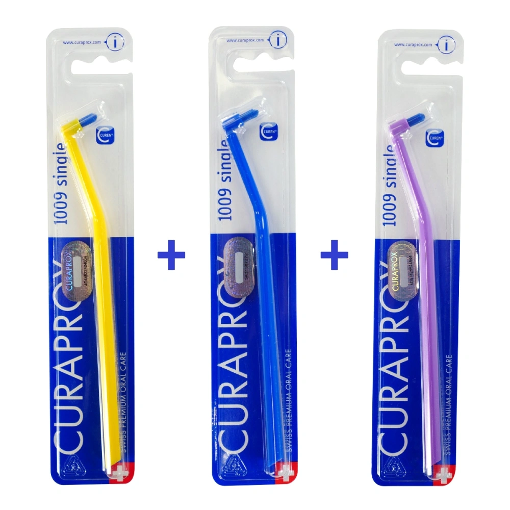 Набор из 3 щёток Curaprox 1009 Single Желтая/ Синяя/ Сиреневая