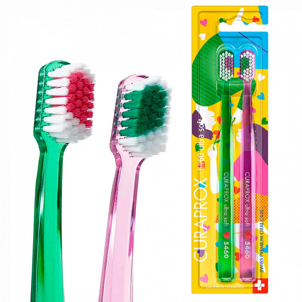 Набор щёток CURAPROX 5460 Ultrasoft состоит из двух щёток, каждая из которых разработана с использованием уникальных технологий для бережного ухода за зубами и деснами. Щетина CUREN изготовлена из полиэстра, в отличие от обычных зубных щеток, которые сделаны полностью из нейлона. Водопоглощаемость полиэстра в шесть раз ниже, поэтому даже во влажном состоянии щетинки CUREN сохраняют первоначальную упругость и пластичность. Комбинация ярких цветов не только привлекает внимание, но и позволяет легко различать щётки в семье. Одной из основных особенностей щёток CURAPROX 5460 является их мягкость, что помогает предотвратить раздражение и воспаление десен при регулярной гигиене полости рта. Уникальная форма головки щётки позволяет эффективно охватывать труднодоступные участки, что способствует улучшению качества очистки. Благодаря высокой плотности, щётки обеспечивают тщательное удаление зубного налёта, что может заметно снизить риск образования кариеса и заболеваний десен.