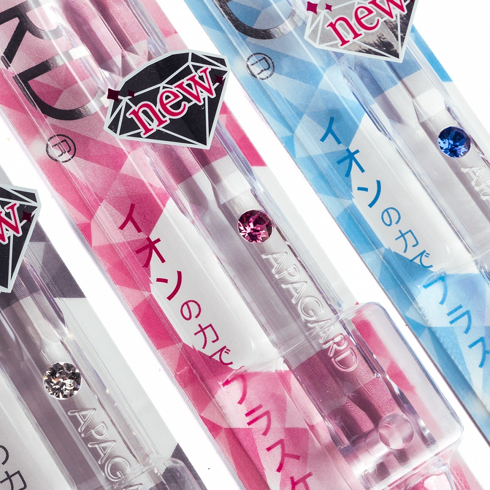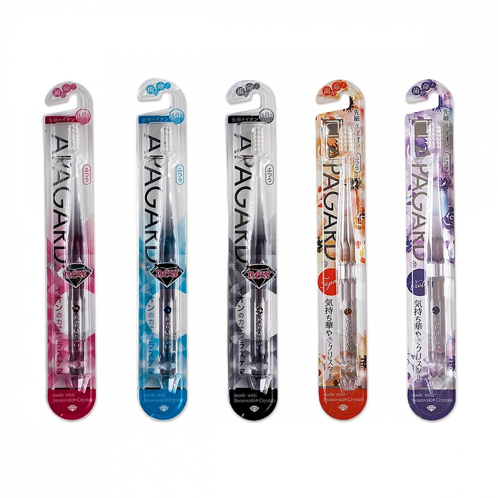 Отбеливающая зубная щетка Apagard Tapered Whitening разработана японской компанией Sangi для бережного и эффективного очищения зубов, десен и межзубных промежутков. Щетка представлена в комбинации с кристаллами Swarovski трех цветов: рубин, сапфир и бриллиант. Материал щетины — полиэстер.