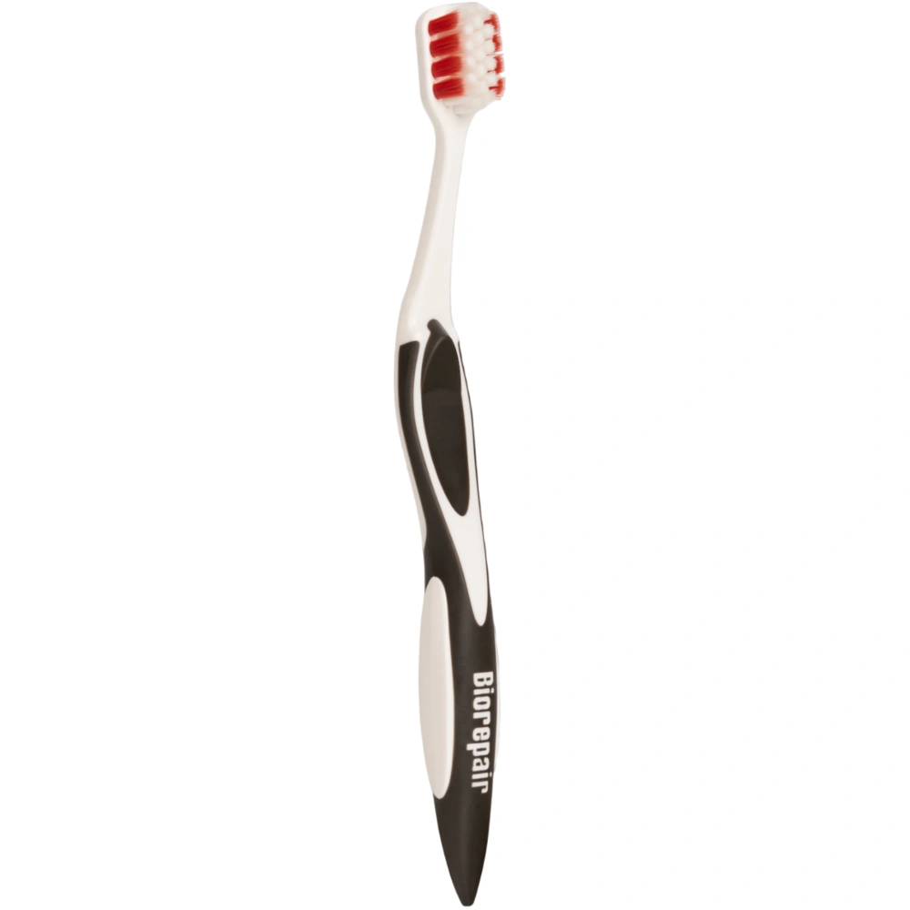 Зубная щётка Biorepair - Создана по новейшей технологии с нанесением на щетину специальных частиц microRepair, которые восстанавливают эмаль. Это цинк замещенный гидроксиапатит, который схож по составу с эмалью и дентином наших зубов. Зубная щетка Biorepair Curve Sensitive имеет запатентованную эргономичную ручку с уникальным изгибом головки, которая позволяет более эффективно достигать и очищать даже самые труднодоступные поверхности, максимально увеличивая контакт между щетинками, зубами и деснами. Щетинки с высокой плотность - 6 996 щетин, глубоко и деликатно очищают зубы и придесневые зоны, удаляя больше налета, чем традиционные щетки. В наличии зубные щетки разных цветов: черная, оранжевая, красная и фиолетовая. Спрашивайте у оператора при оформлении заказа.