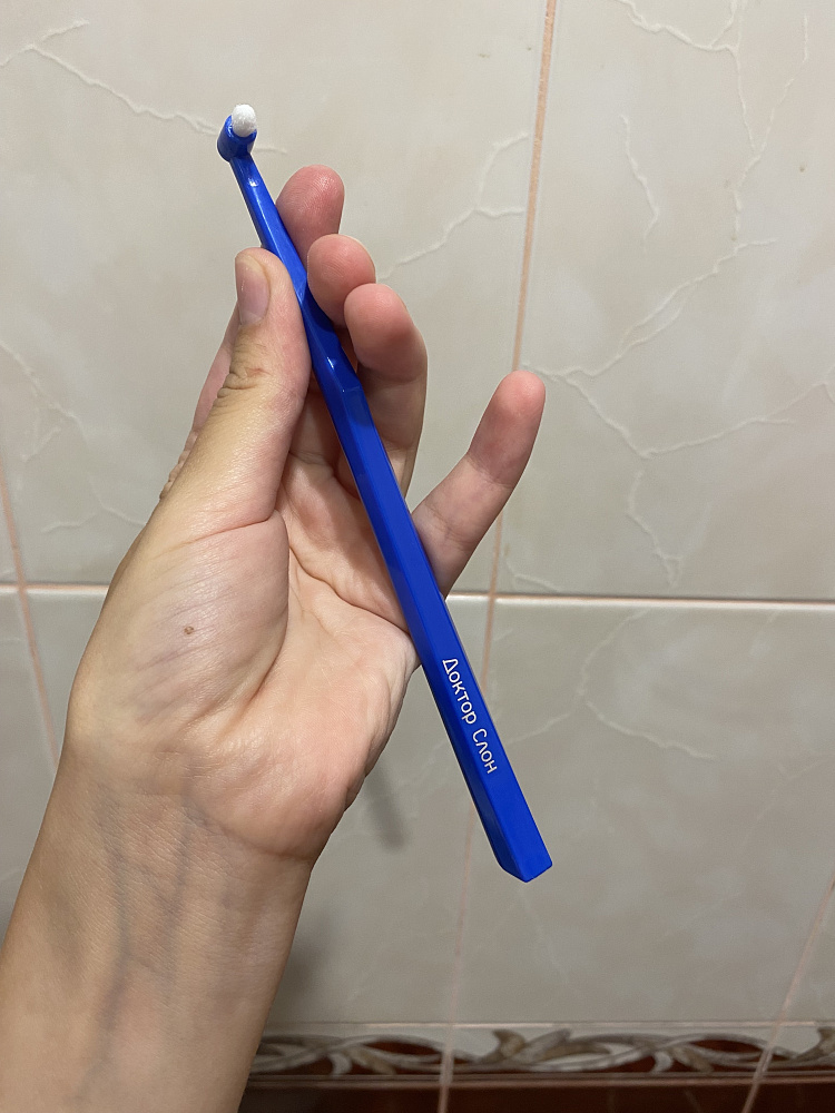 Классная, мне лично удобно лежит в руке. Одна из первых моих монопучковых щёток, рада что приобрела, после таблетки - индикатора рука к ней сама тянется)