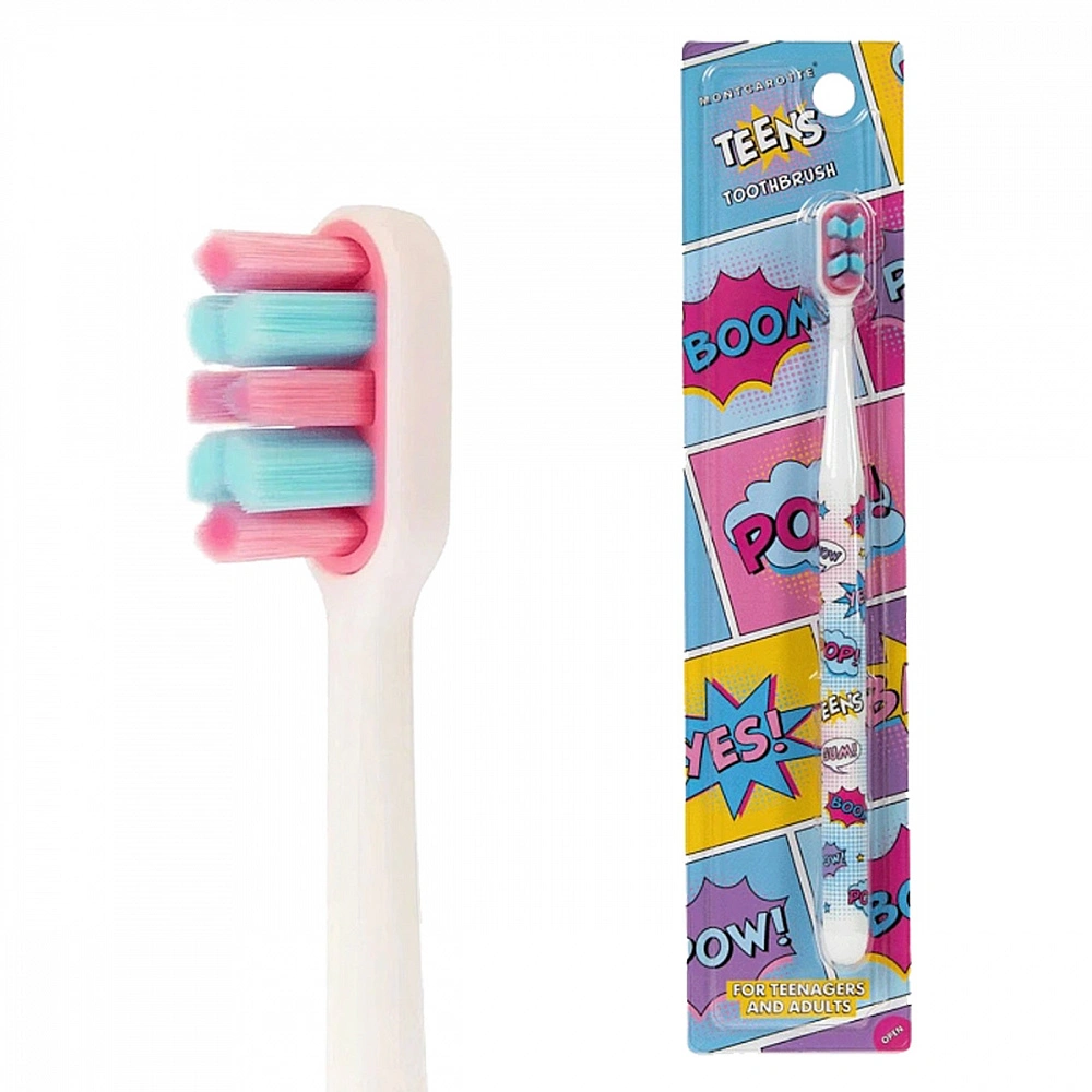 Зубная щетка MontCarotte Teens - первая в мире щетка, разработанная специально для подростков! Инновационная щетка от MonCarotte с персональным дизайном и округлыми щетинками c креплением нового поколения. Щётка имеет компактную головку, позволяющую легко достигать труднодоступных участков, таких как задние зубы и межзубные пространства. Эргономичная ручка обеспечивает комфортный захват, что помогает подросткам самостоятельно и уверенно заботиться о своей гигиене.