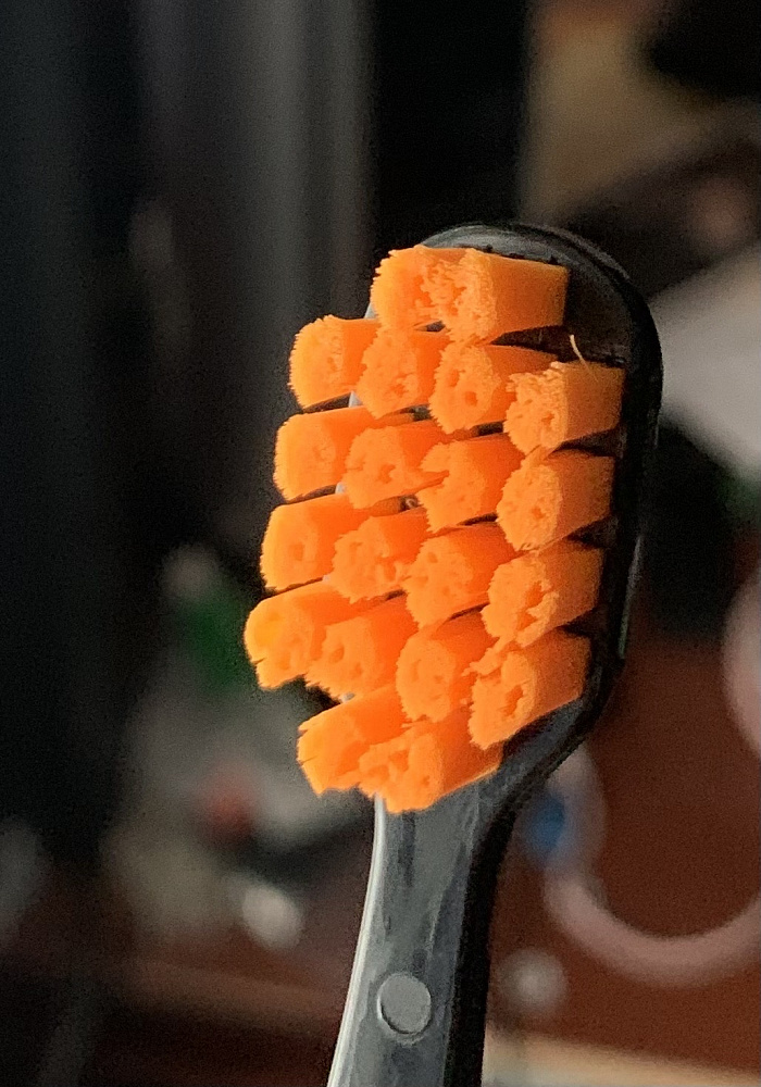 Диаметр ворсинок ёршика. должен быть в 3-4 раза больше ширины межзубного промежутка. Это позволяет щетинкам достаточно плотно соприкасаться с боковыми зубными поверхностями без риска повреждения эмали и десен стержнем.