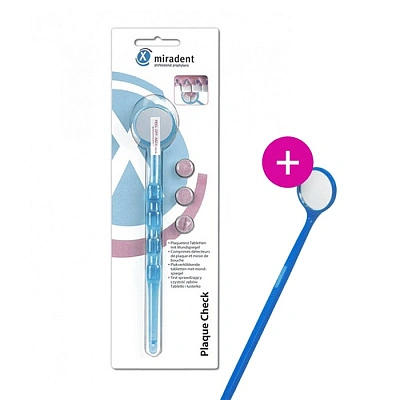 Список средств для индикации налёта был бы неполным без стоматологического зеркала miradent Plaque Check. Аксессуар позволяет увидеть наглядную картину целиком и рассмотреть внутреннюю поверхность зубов: это самая сложная для очищения область.